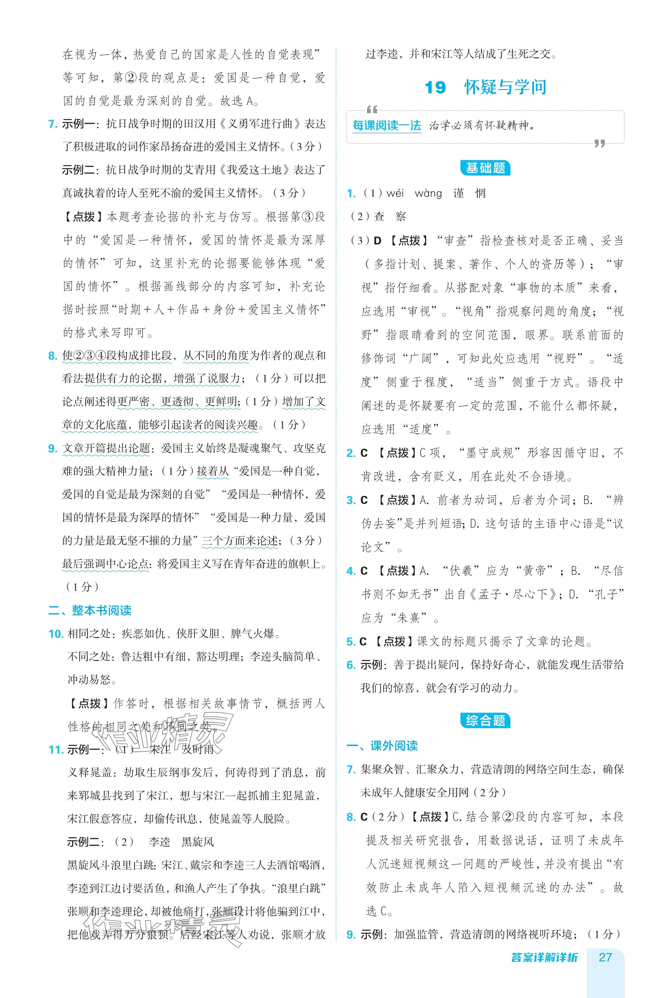 2024年综合应用创新题典中点九年级语文全一册人教版五四制