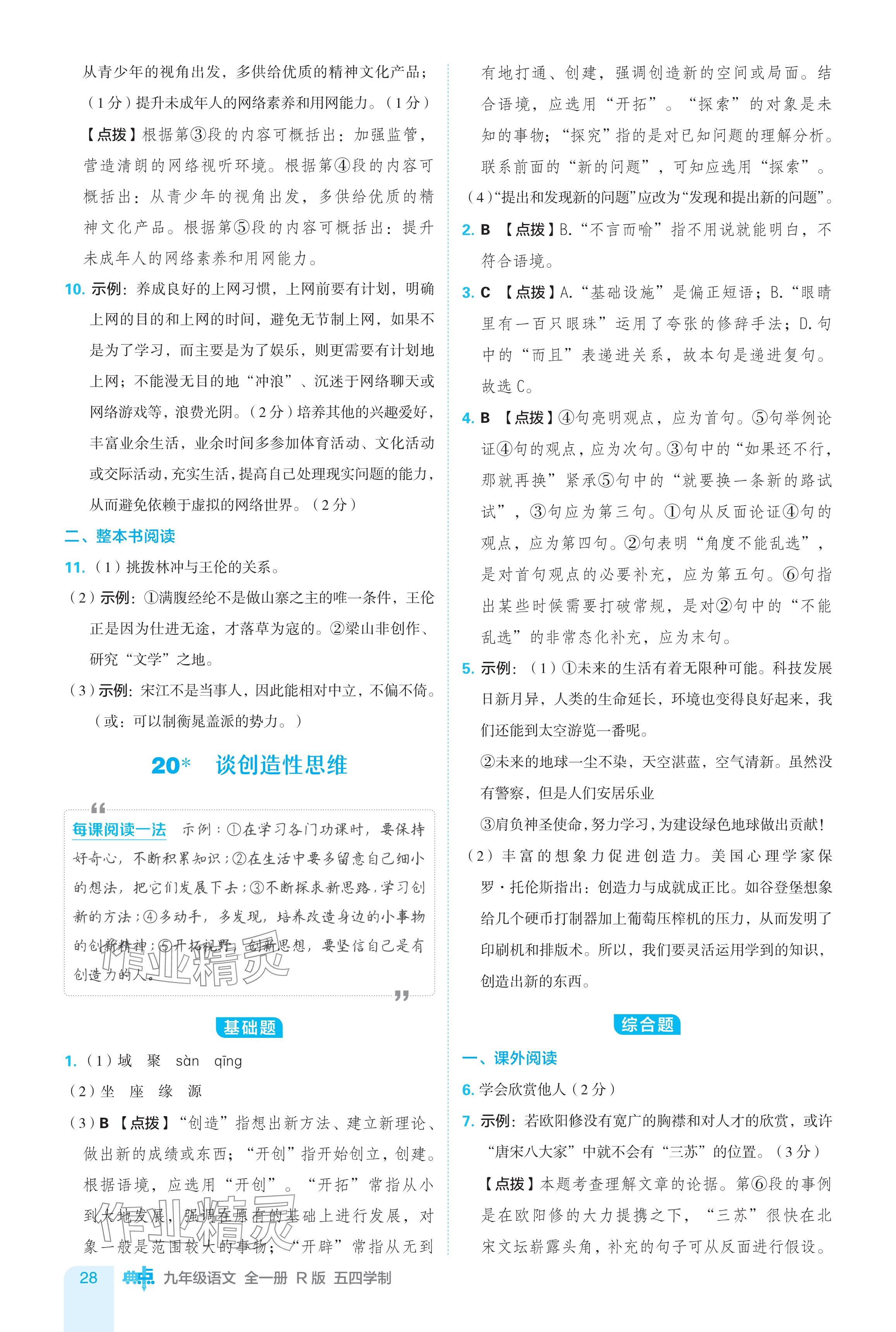 2024年综合应用创新题典中点九年级语文全一册人教版五四制