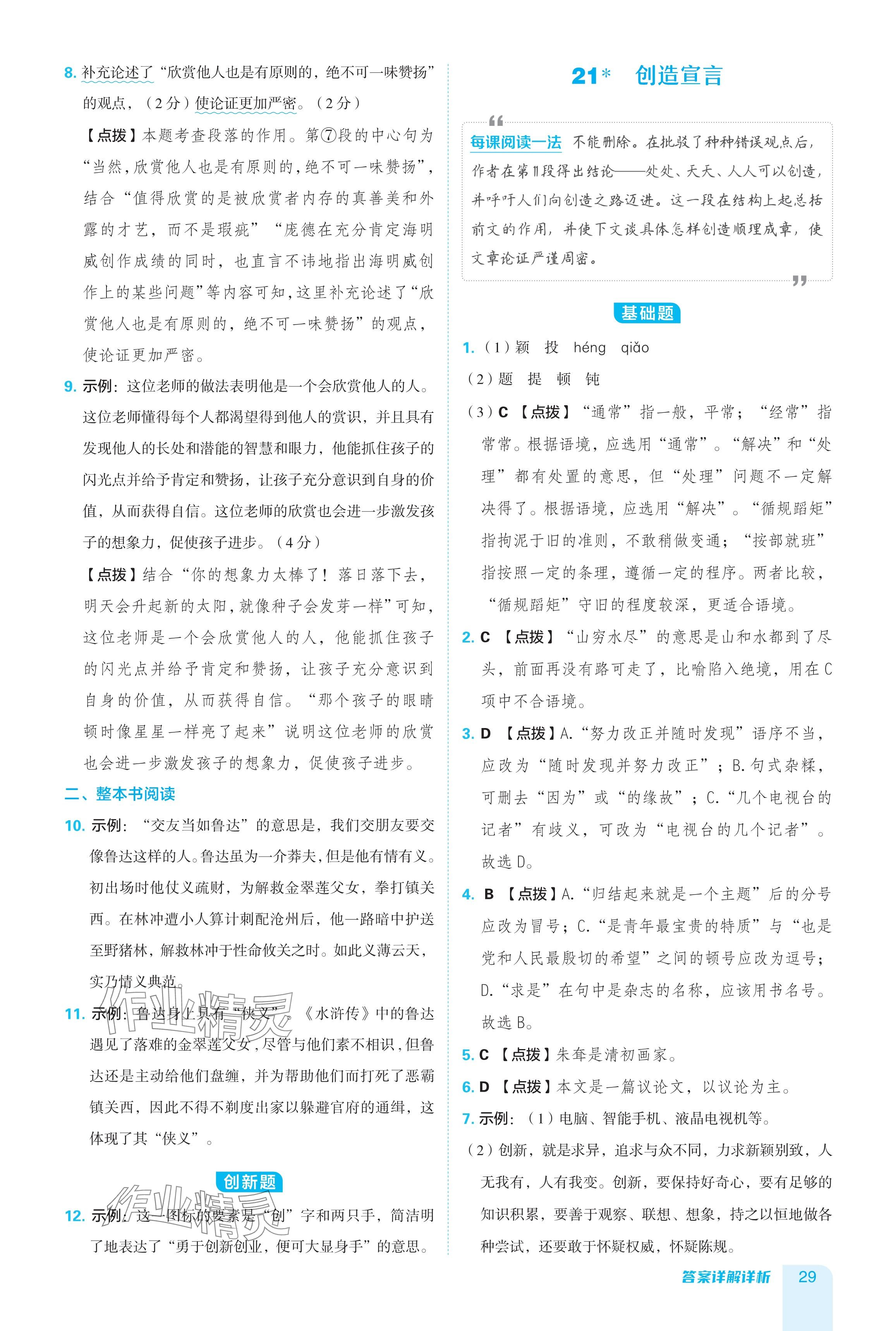 2024年综合应用创新题典中点九年级语文全一册人教版五四制