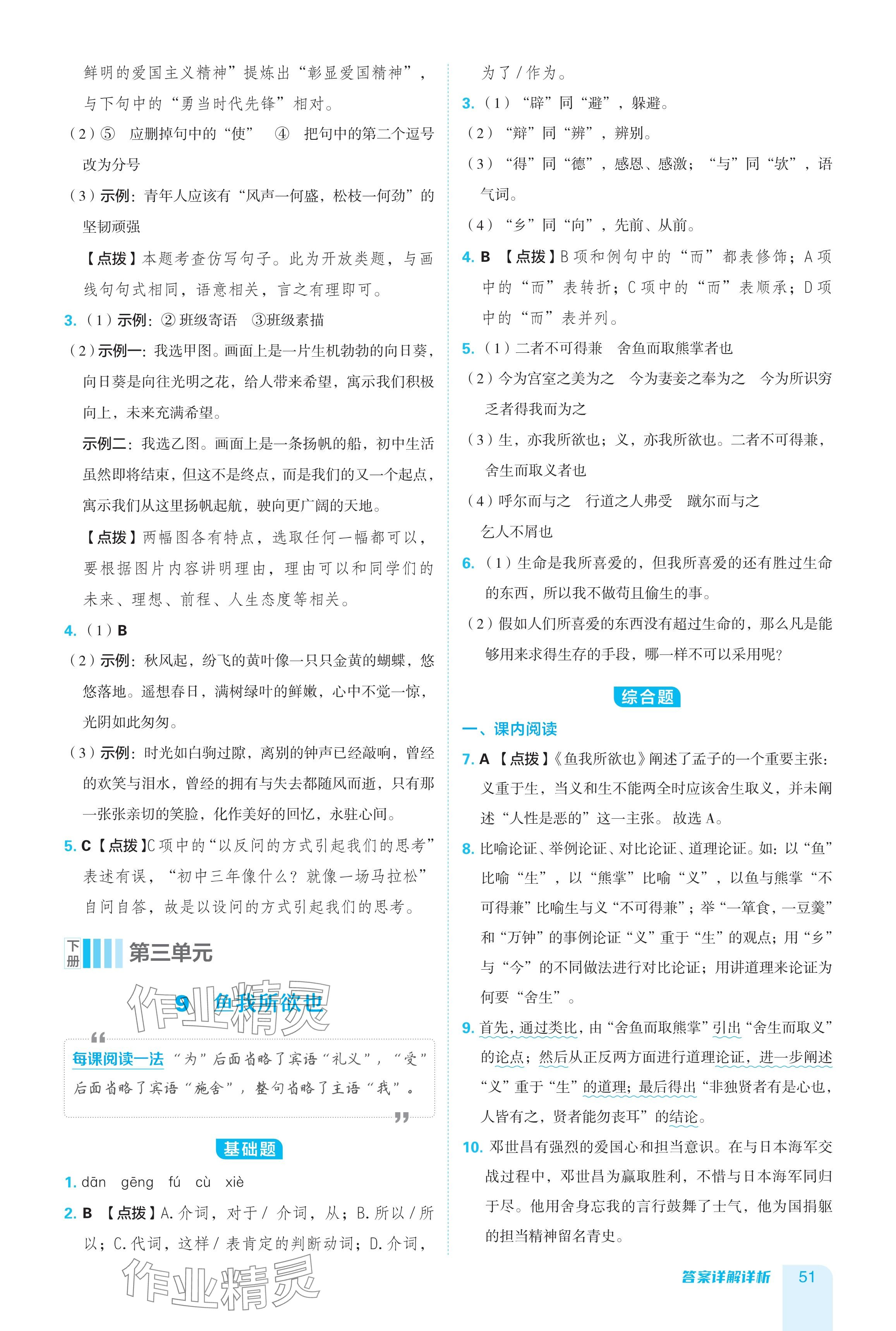 2024年综合应用创新题典中点九年级语文全一册人教版五四制