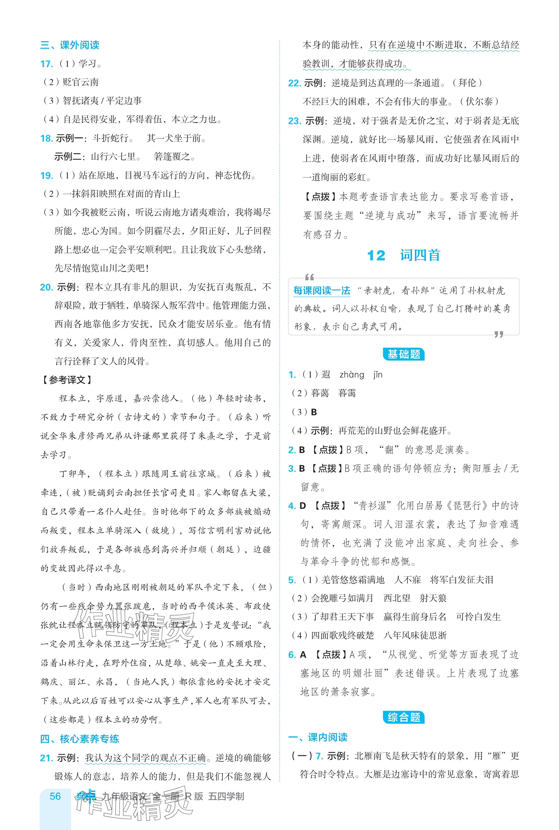 注:目前有些书本章节名称可能整理的还不是很完善,但都是按照顺序排列的,请同学们按照顺序仔细查找。练习册 2024年综合应用创新题典中点九年级语文全一册人教版五四制 答案主要是用来给同学们做完题方便对答案用的,请勿直接抄袭。
