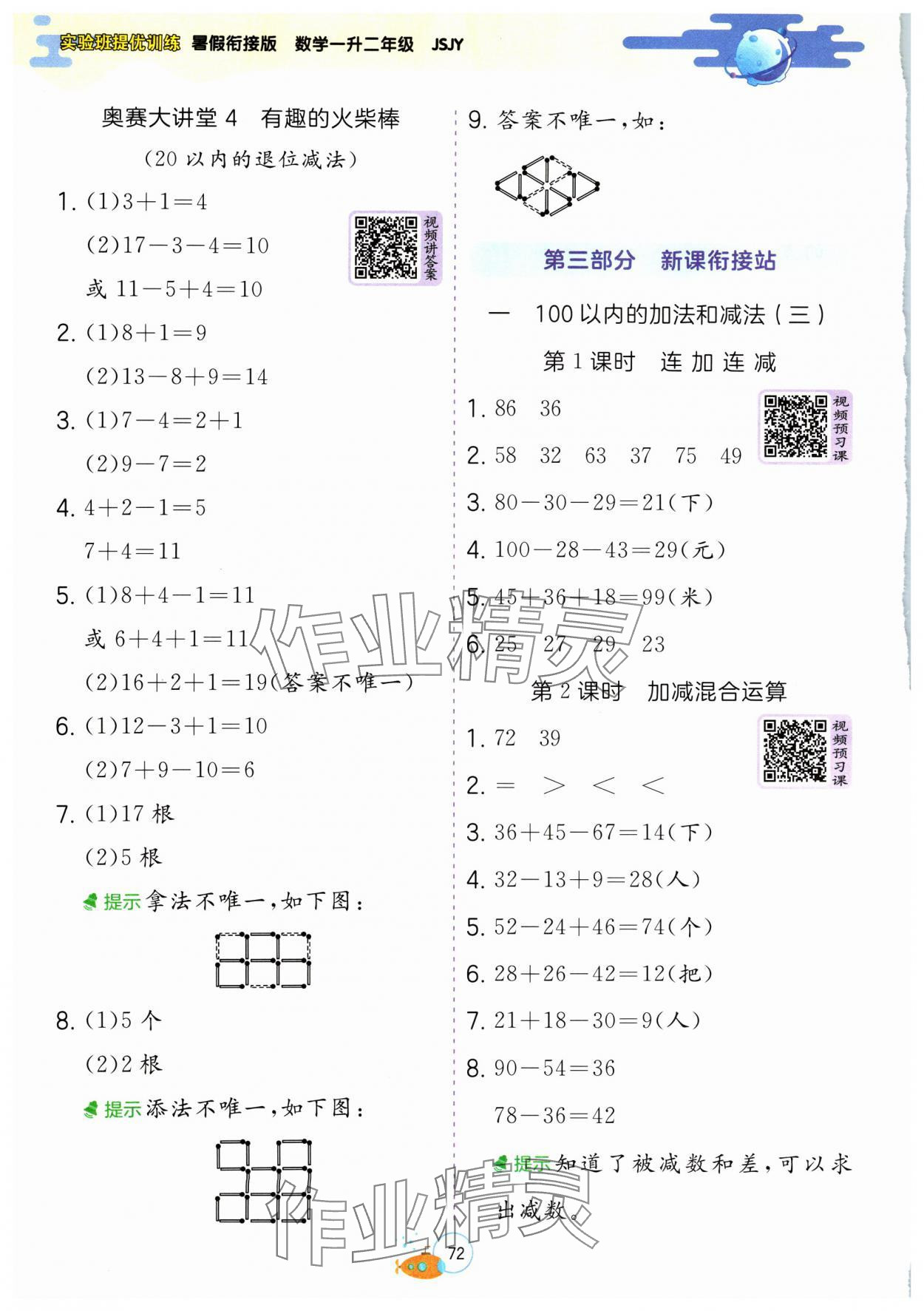注:目前有些书本章节名称可能整理的还不是很完善,但都是按照顺序排列的,请同学们按照顺序仔细查找。练习册 2024年实验班提优训练暑假衔接版一升二年级数学苏教版 答案主要是用来给同学们做完题方便对答案用的,请勿直接抄袭。