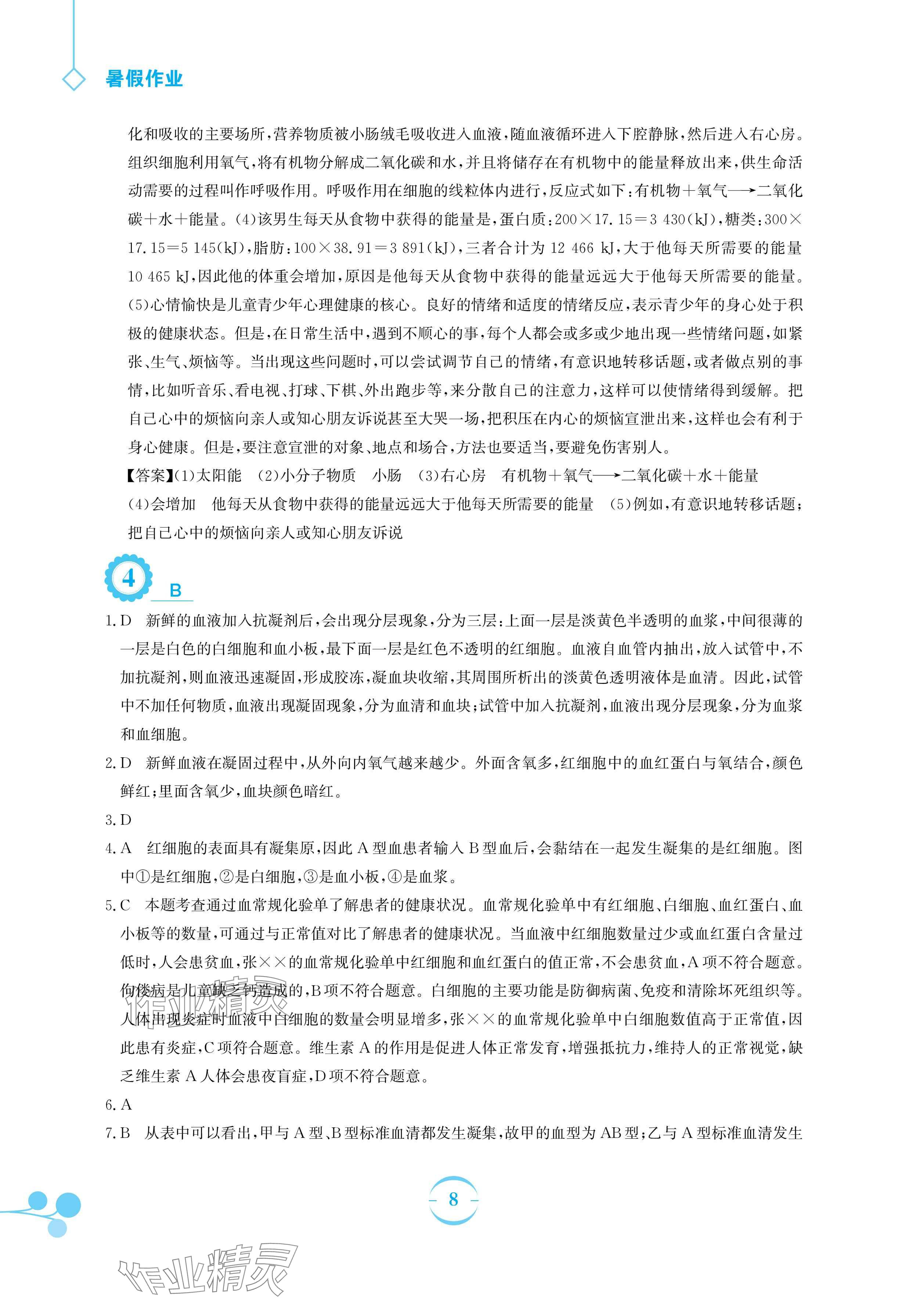 注:目前有些书本章节名称可能整理的还不是很完善,但都是按照顺序排列的,请同学们按照顺序仔细查找。练习册 2024年暑假作业安徽教育出版社七年级生物苏教版 答案主要是用来给同学们做完题方便对答案用的,请勿直接抄袭。