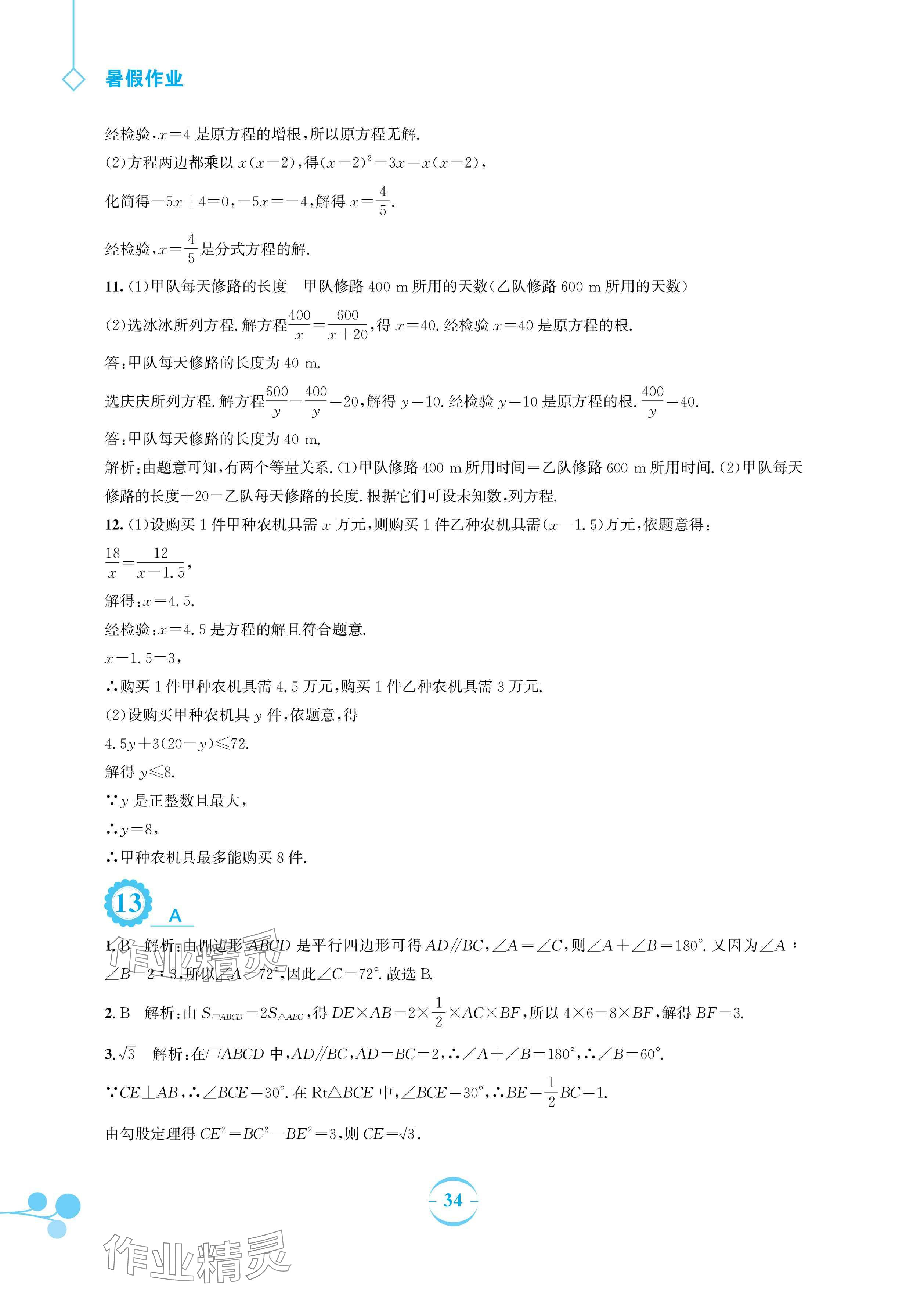 注:目前有些书本章节名称可能整理的还不是很完善,但都是按照顺序排列的,请同学们按照顺序仔细查找。练习册 2024年暑假作业安徽教育出版社八年级数学北师大版 答案主要是用来给同学们做完题方便对答案用的,请勿直接抄袭。