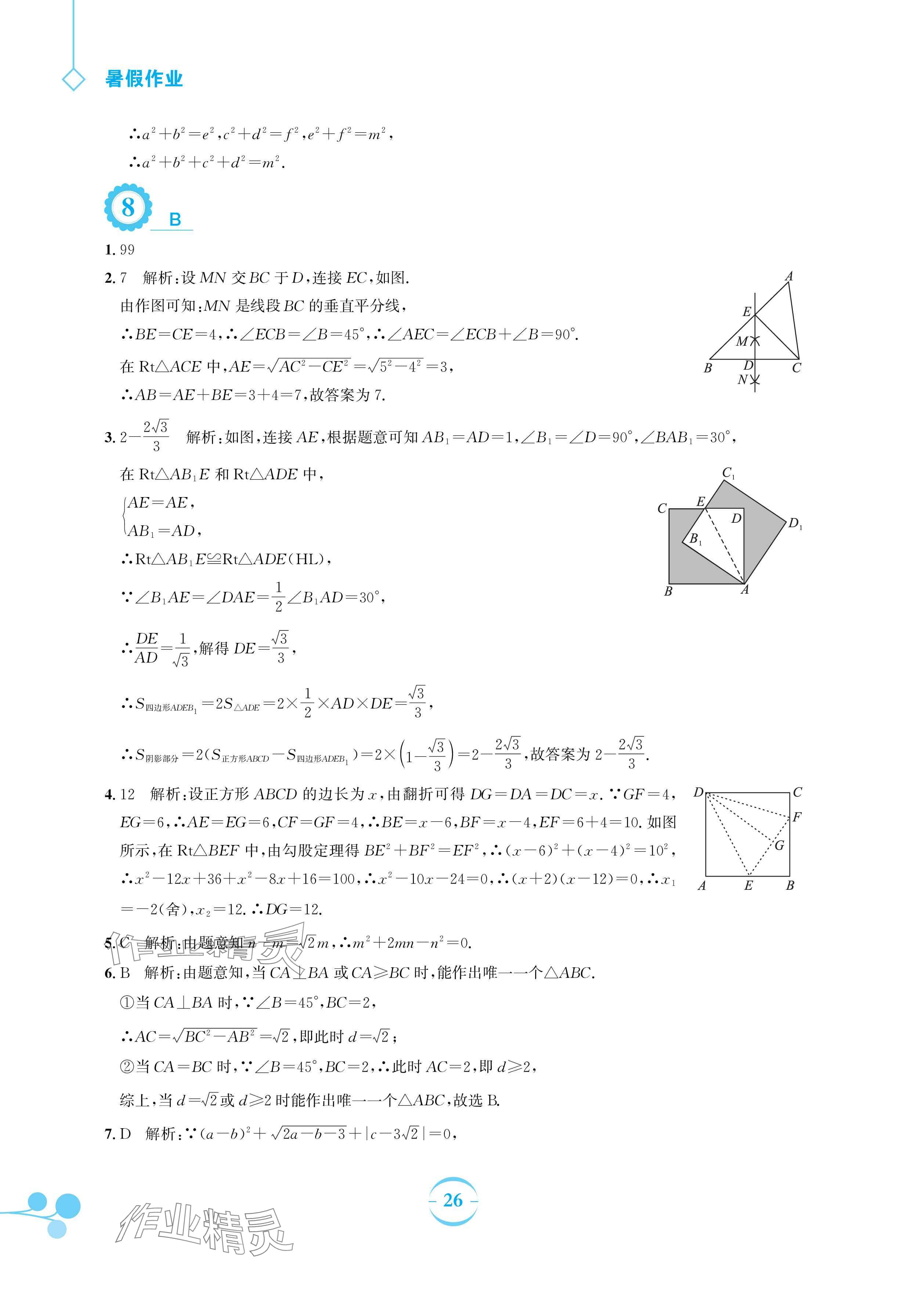 2024年暑假作业安徽教育出版社八年级数学沪科版