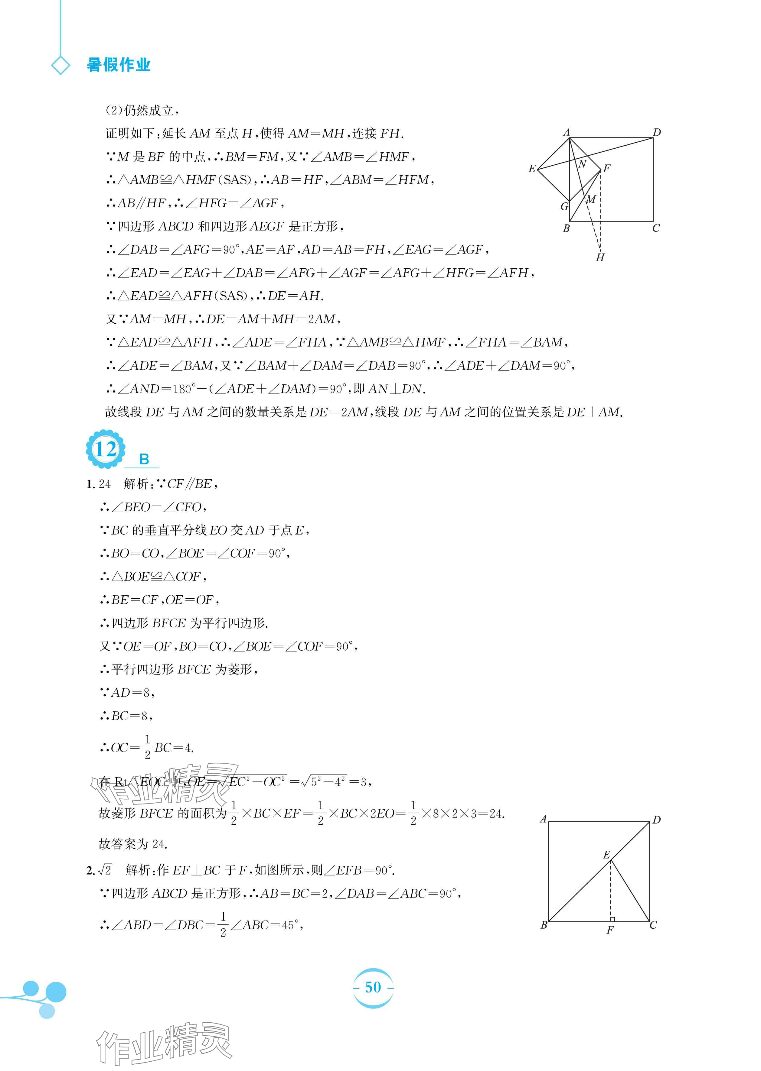 2024年暑假作业安徽教育出版社八年级数学沪科版