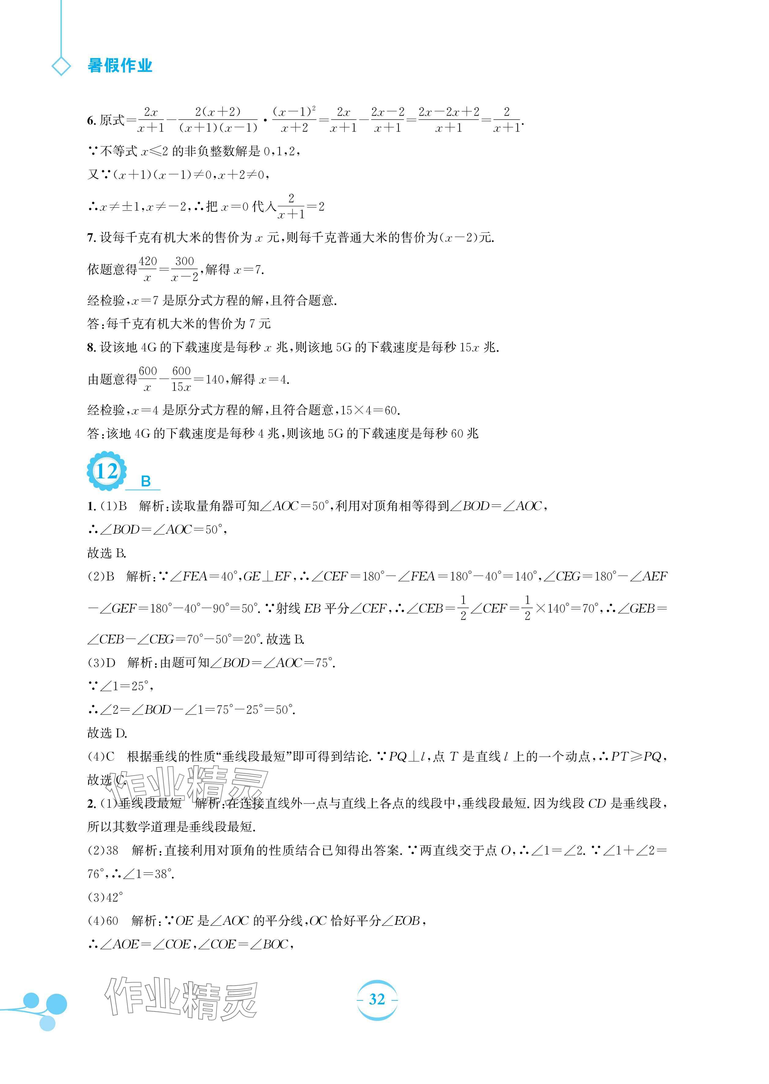 2024年暑假作业安徽教育出版社七年级数学沪科版