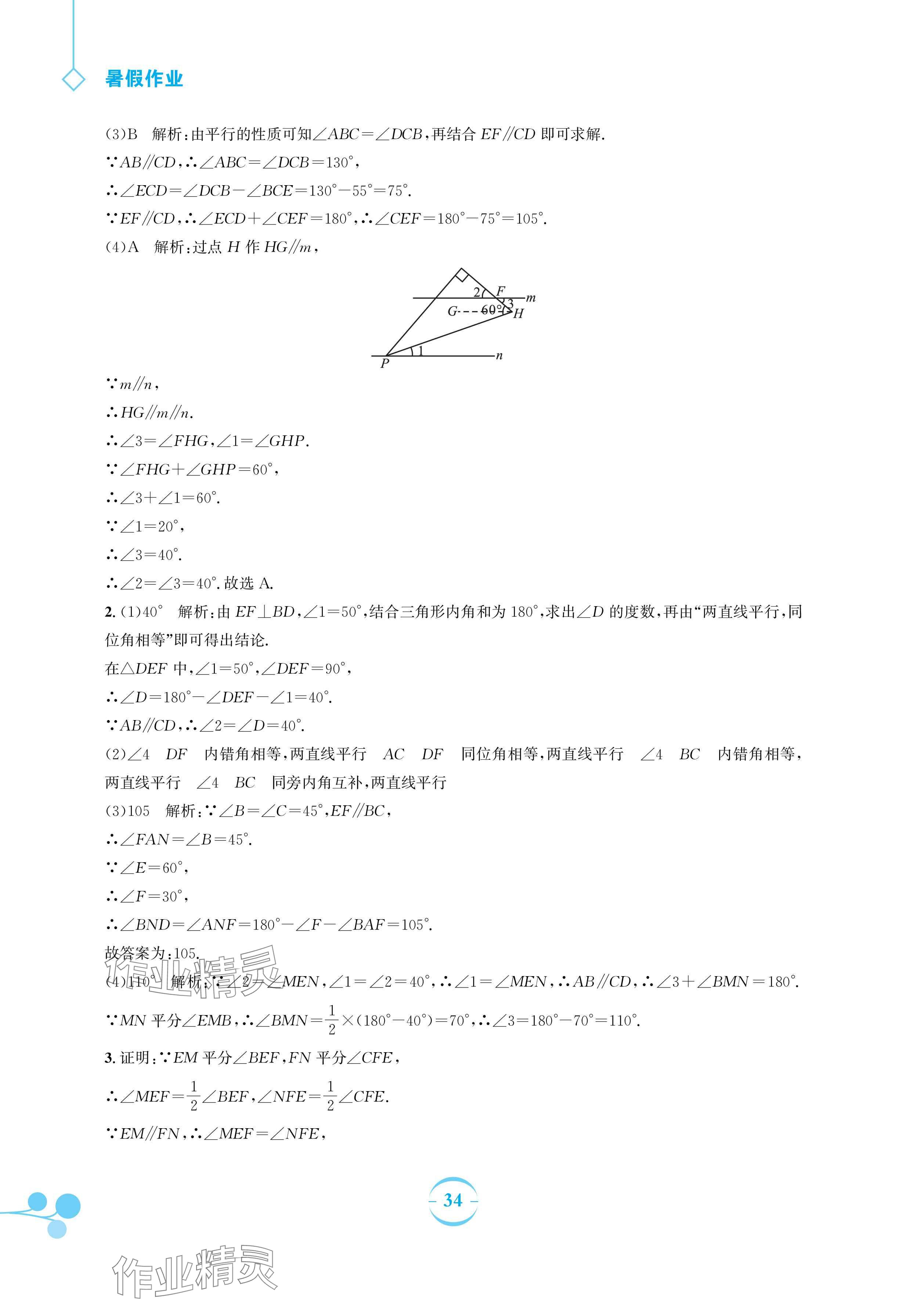 2024年暑假作业安徽教育出版社七年级数学沪科版