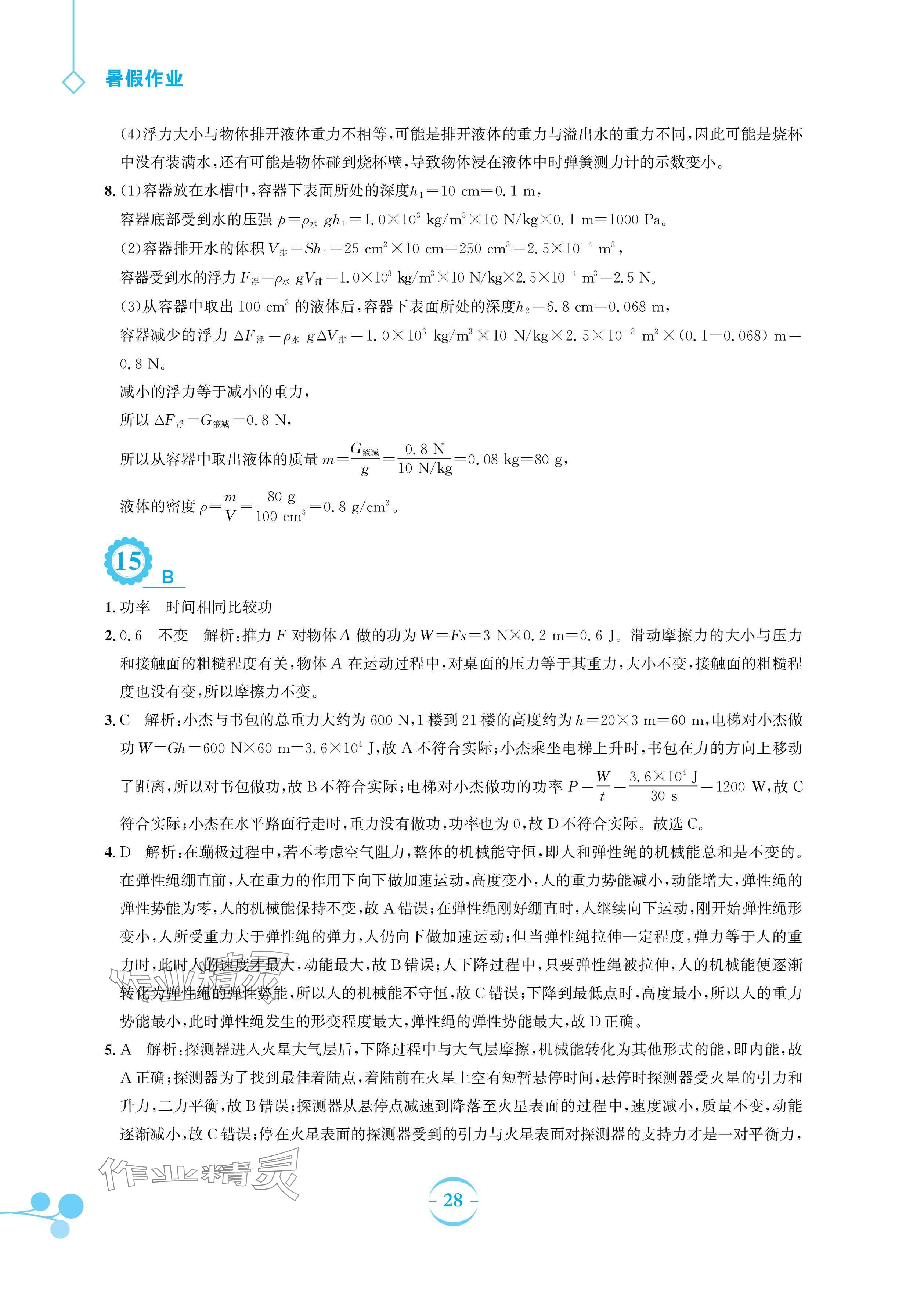 《2024年暑假作业安徽教育出版社八年级物理人教版》