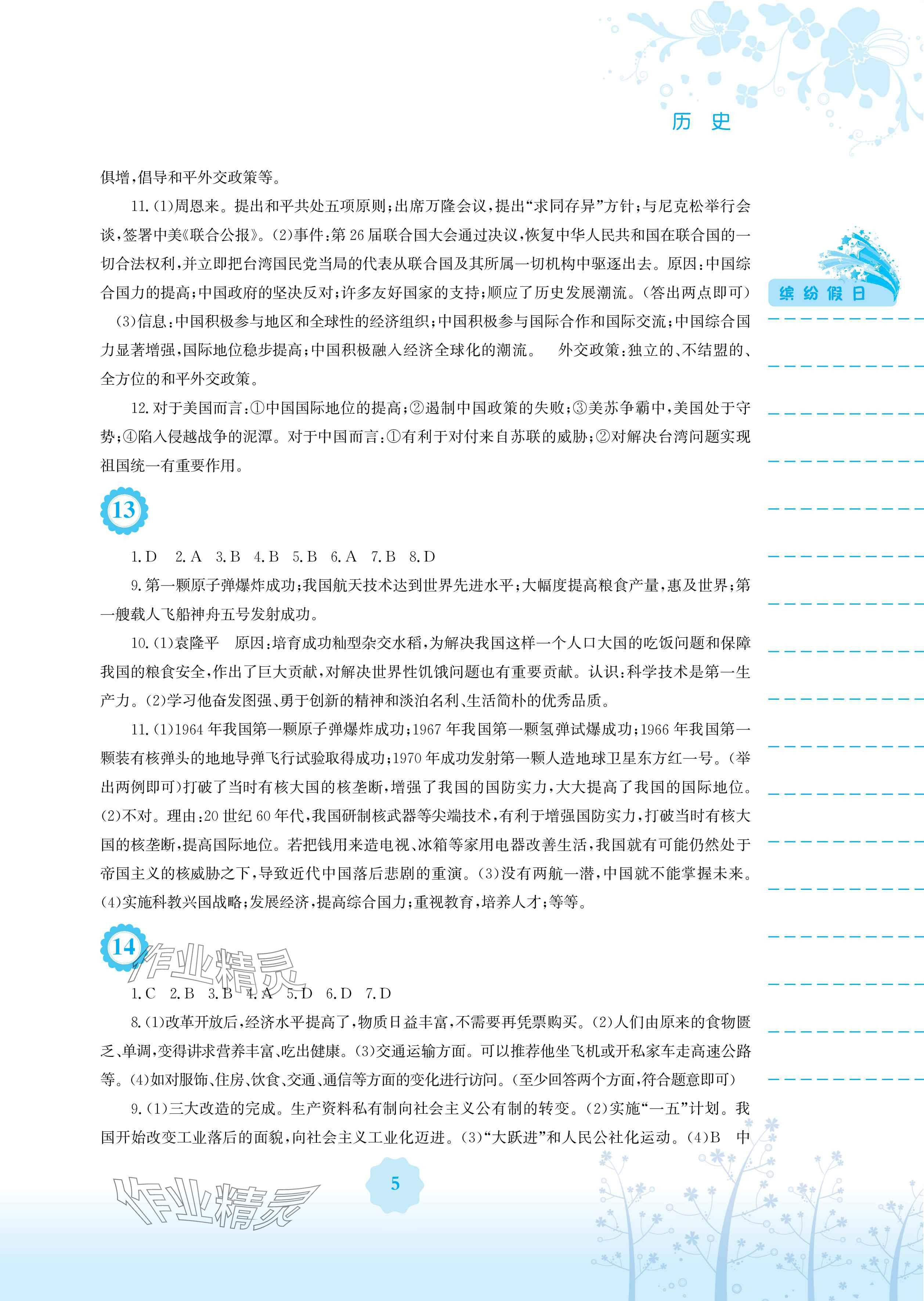 2024年暑假生活八年级历史人教版安徽教育出版社
