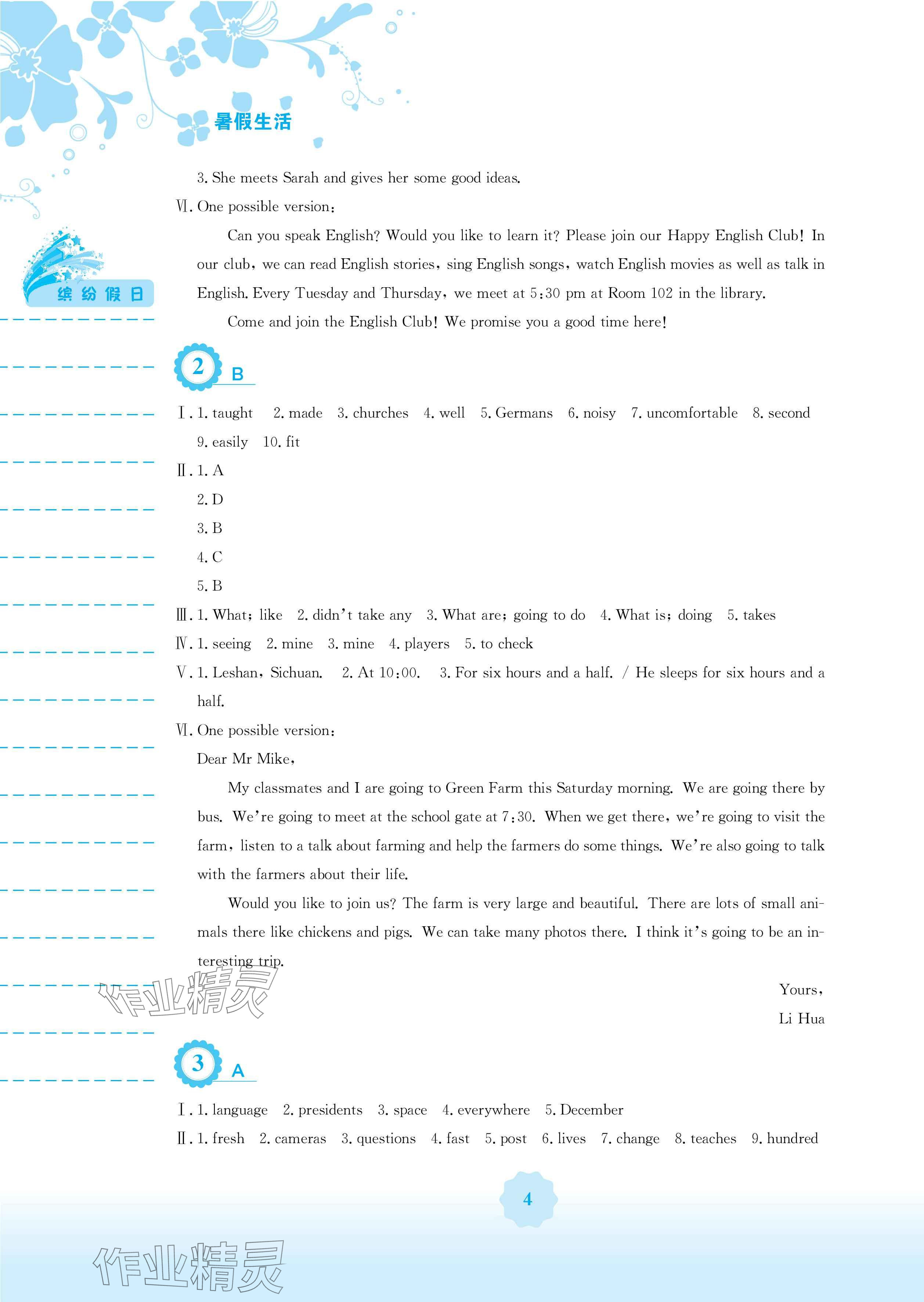 注:目前有些书本章节名称可能整理的还不是很完善,但都是按照顺序排列的,请同学们按照顺序仔细查找。练习册 2024年暑假生活安徽教育出版社七年级英语外研版 答案主要是用来给同学们做完题方便对答案用的,请勿直接抄袭。
