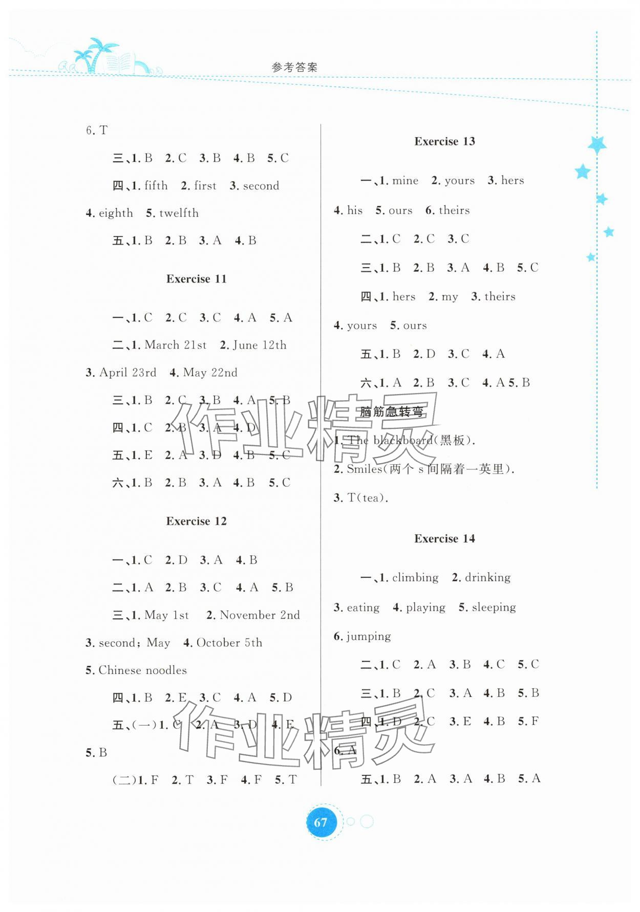 注:目前有些书本章节名称可能整理的还不是很完善,但都是按照顺序排列的,请同学们按照顺序仔细查找。练习册 2024年暑假作业五年级英语内蒙古教育出版社 答案主要是用来给同学们做完题方便对答案用的,请勿直接抄袭。