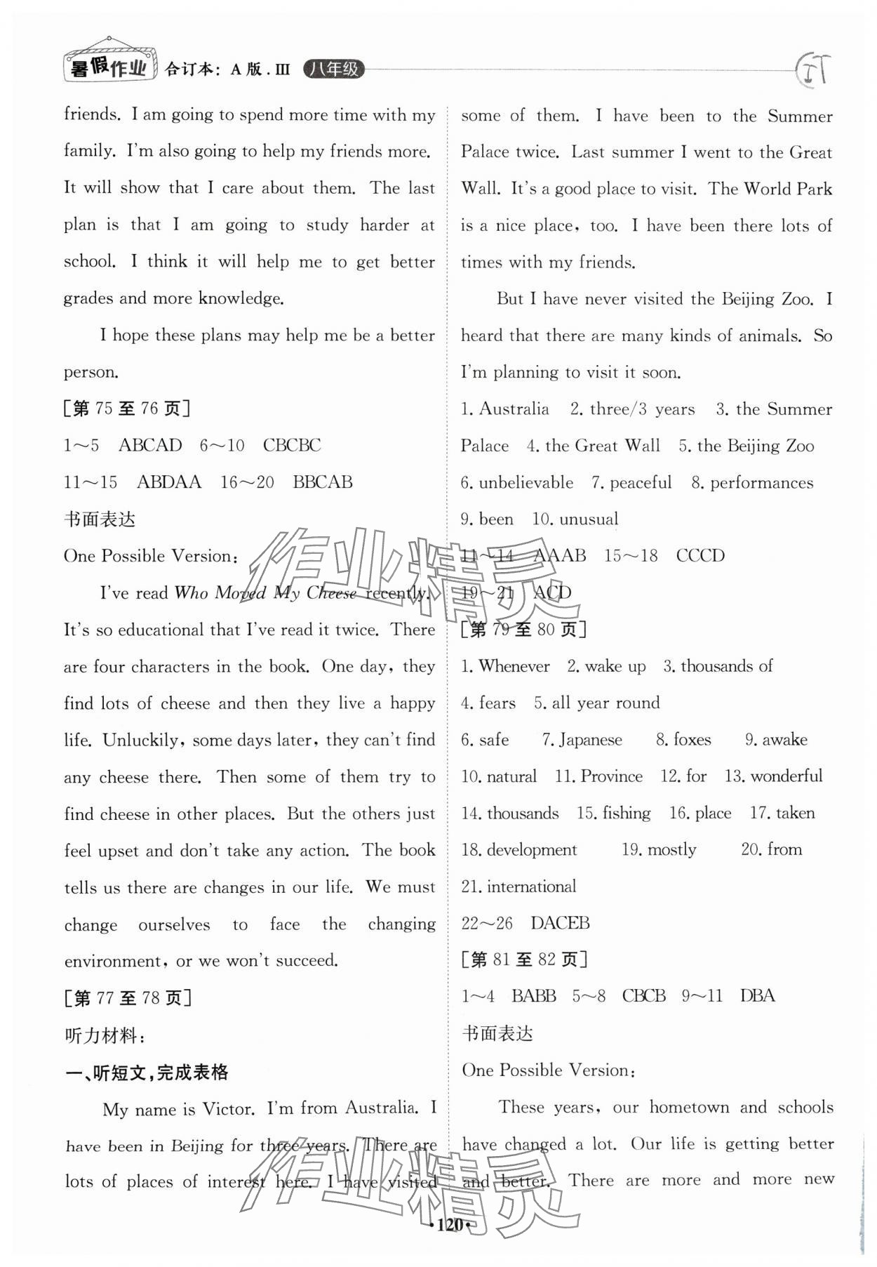 《2024年暑假作业江西高校出版社A版III八年级合订本》