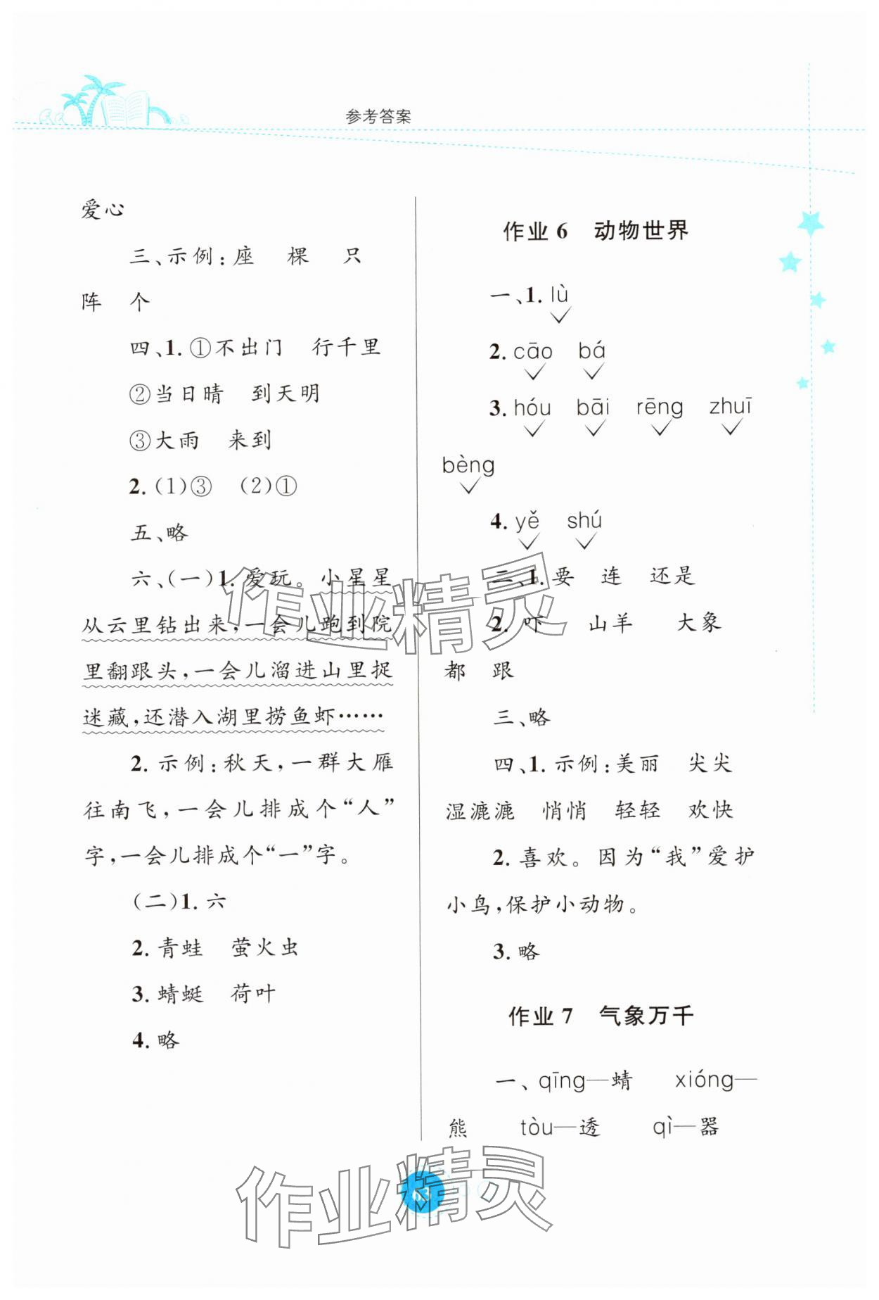 注:目前有些书本章节名称可能整理的还不是很完善,但都是按照顺序排列的,请同学们按照顺序仔细查找。练习册 2024年暑假园地知识出版社一年级语文 答案主要是用来给同学们做完题方便对答案用的,请勿直接抄袭。