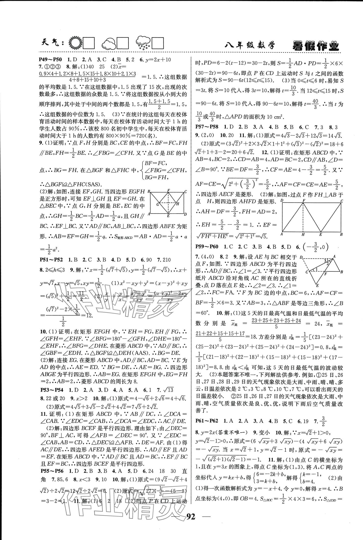 注:目前有些书本章节名称可能整理的还不是很完善,但都是按照顺序排列的,请同学们按照顺序仔细查找。练习册 2024年暑假作业快乐的假日八年级数学 答案主要是用来给同学们做完题方便对答案用的,请勿直接抄袭。