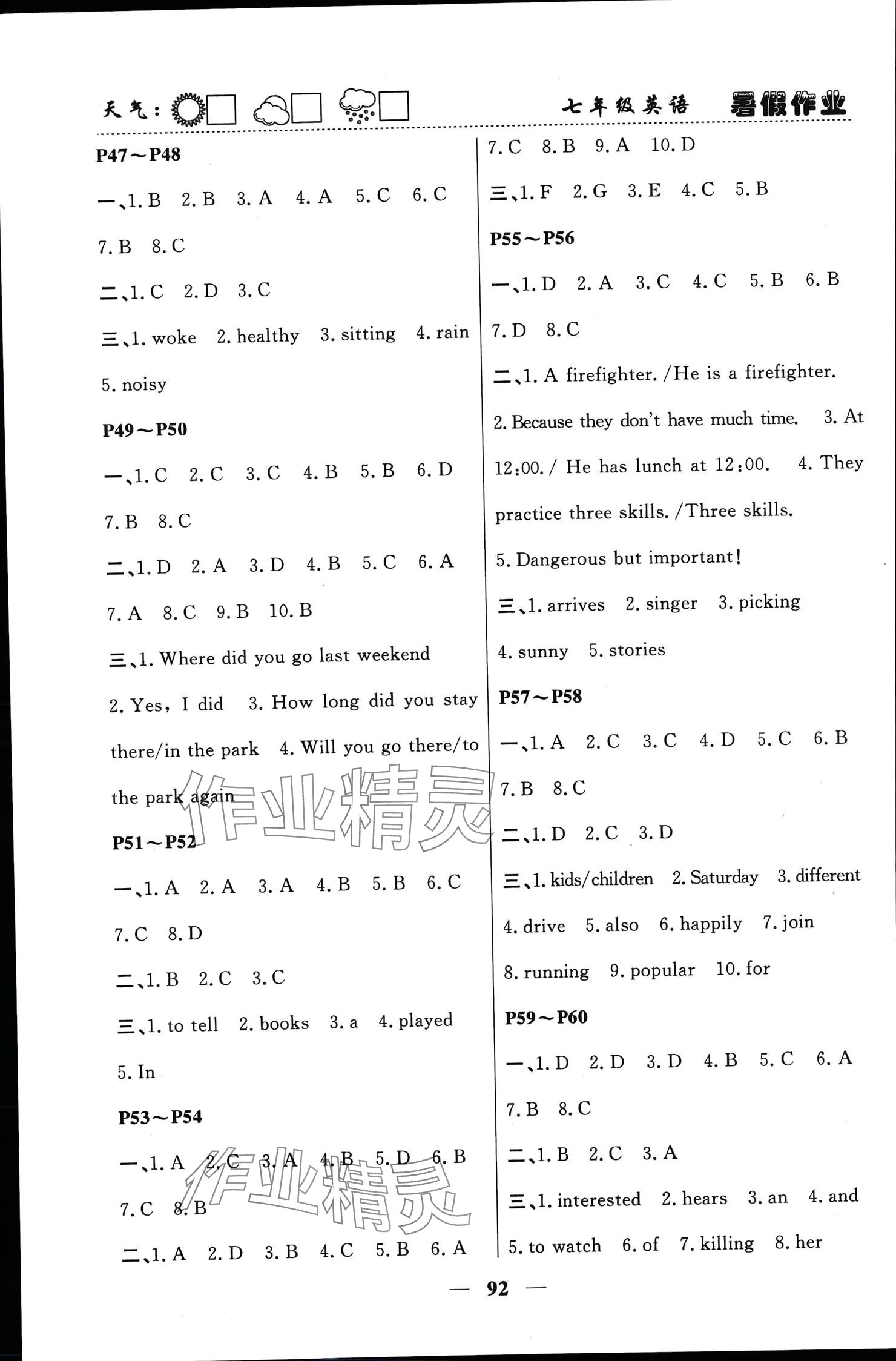 2024年暑假作业快乐的假日七年级英语