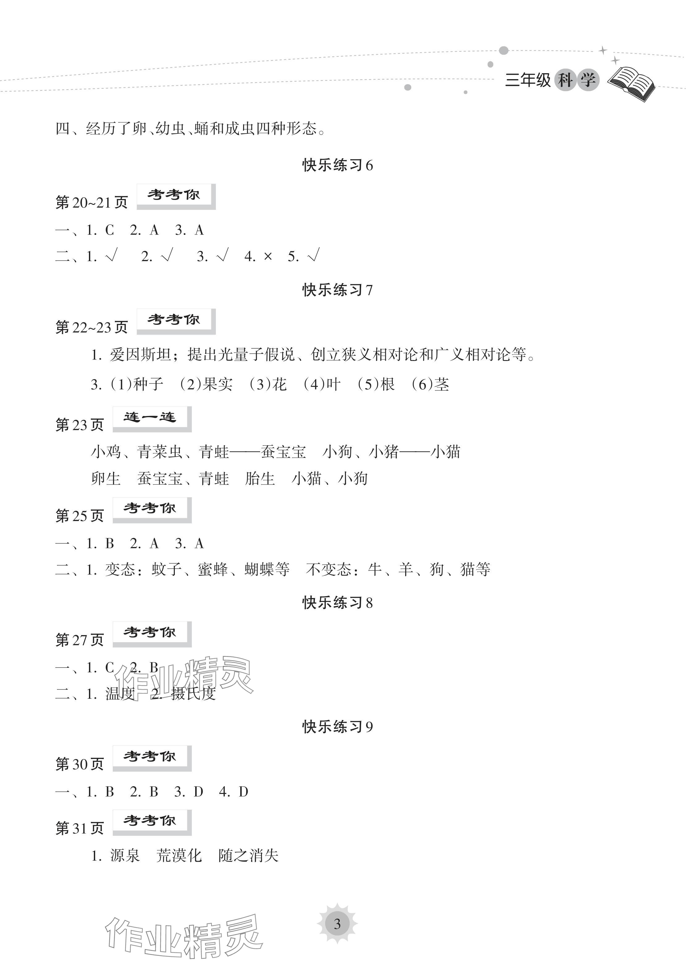 注:目前有些书本章节名称可能整理的还不是很完善,但都是按照顺序排列的,请同学们按照顺序仔细查找。练习册 2024年暑假乐园海南出版社三年级科学教科版 答案主要是用来给同学们做完题方便对答案用的,请勿直接抄袭。
