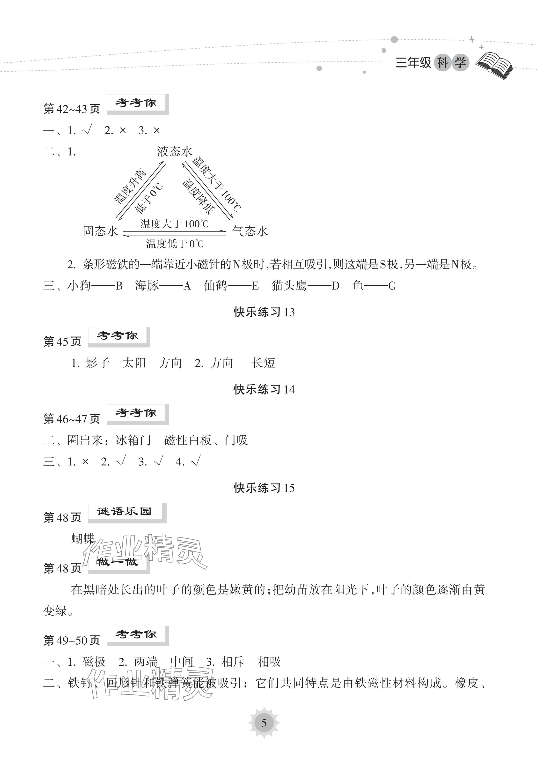 注:目前有些书本章节名称可能整理的还不是很完善,但都是按照顺序排列的,请同学们按照顺序仔细查找。练习册 2024年暑假乐园海南出版社三年级科学教科版 答案主要是用来给同学们做完题方便对答案用的,请勿直接抄袭。