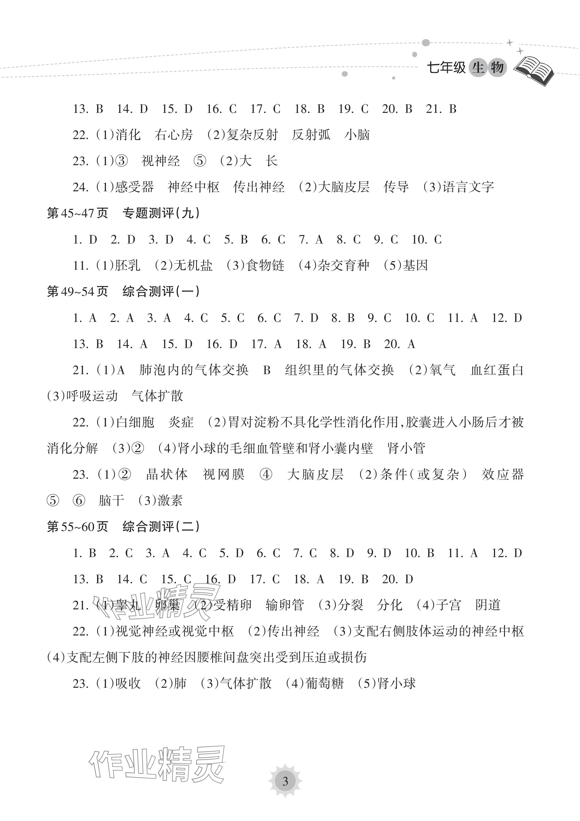 注:目前有些书本章节名称可能整理的还不是很完善,但都是按照顺序排列的,请同学们按照顺序仔细查找。练习册 2024年暑假乐园海南出版社七年级生物人教版 答案主要是用来给同学们做完题方便对答案用的,请勿直接抄袭。