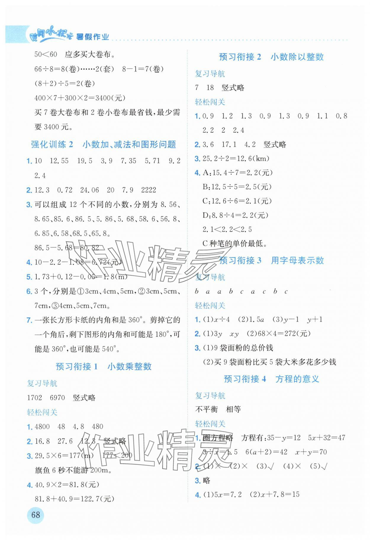 注:目前有些书本章节名称可能整理的还不是很完善,但都是按照顺序排列的,请同学们按照顺序仔细查找。练习册 2024年黄冈小状元暑假作业龙门书局四升五数学 答案主要是用来给同学们做完题方便对答案用的,请勿直接抄袭。