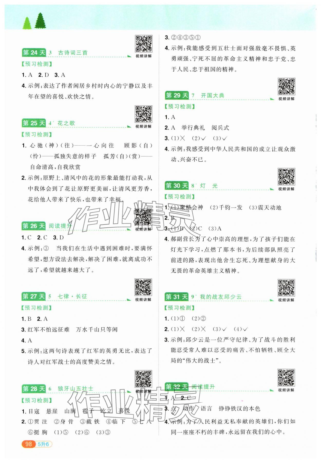 注:目前有些书本章节名称可能整理的还不是很完善,但都是按照顺序排列的,请同学们按照顺序仔细查找。练习册 2024年阳光同学暑假衔接五升六年级语文 答案主要是用来给同学们做完题方便对答案用的,请勿直接抄袭。