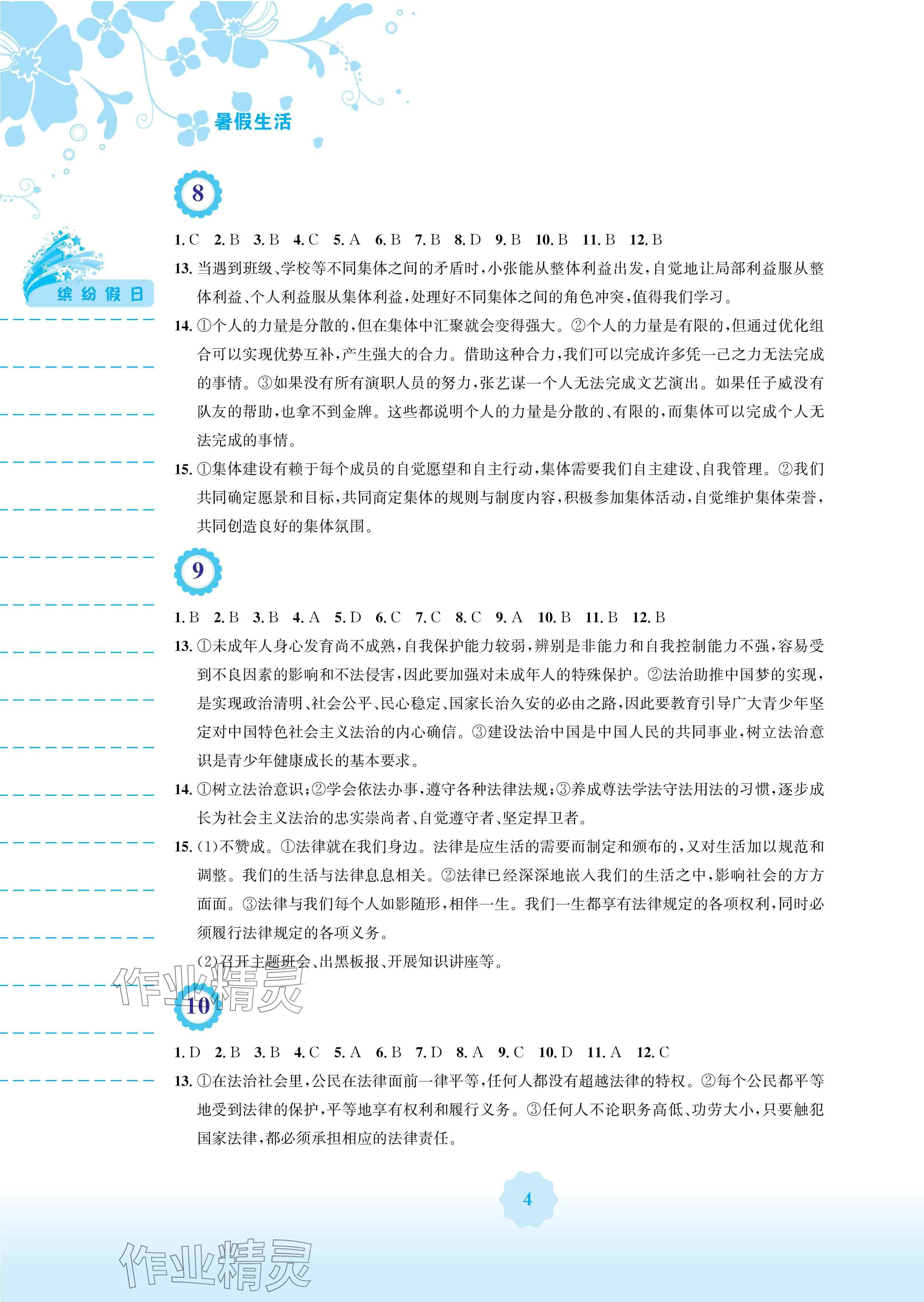 注:目前有些书本章节名称可能整理的还不是很完善,但都是按照顺序排列的,请同学们按照顺序仔细查找。练习册 2024年暑假生活安徽教育出版社七年级道德与法治人教版 答案主要是用来给同学们做完题方便对答案用的,请勿直接抄袭。