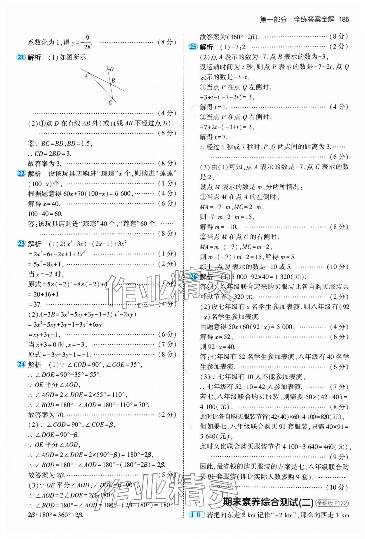 注:目前有些书本章节名称可能整理的还不是很完善,但都是按照顺序排列的,请同学们按照顺序仔细查找。练习册 2024年5年中考3年模拟七年级数学上册青岛版 答案主要是用来给同学们做完题方便对答案用的,请勿直接抄袭。