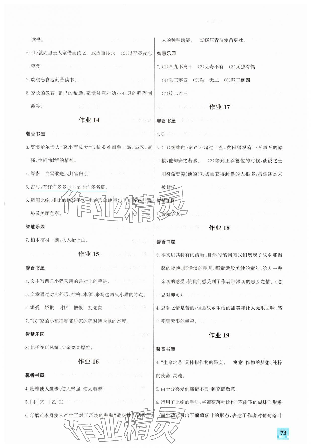 注:目前有些书本章节名称可能整理的还不是很完善,但都是按照顺序排列的,请同学们按照顺序仔细查找。练习册 2024年智趣夏令营七年基础与阅读通用版 答案主要是用来给同学们做完题方便对答案用的,请勿直接抄袭。