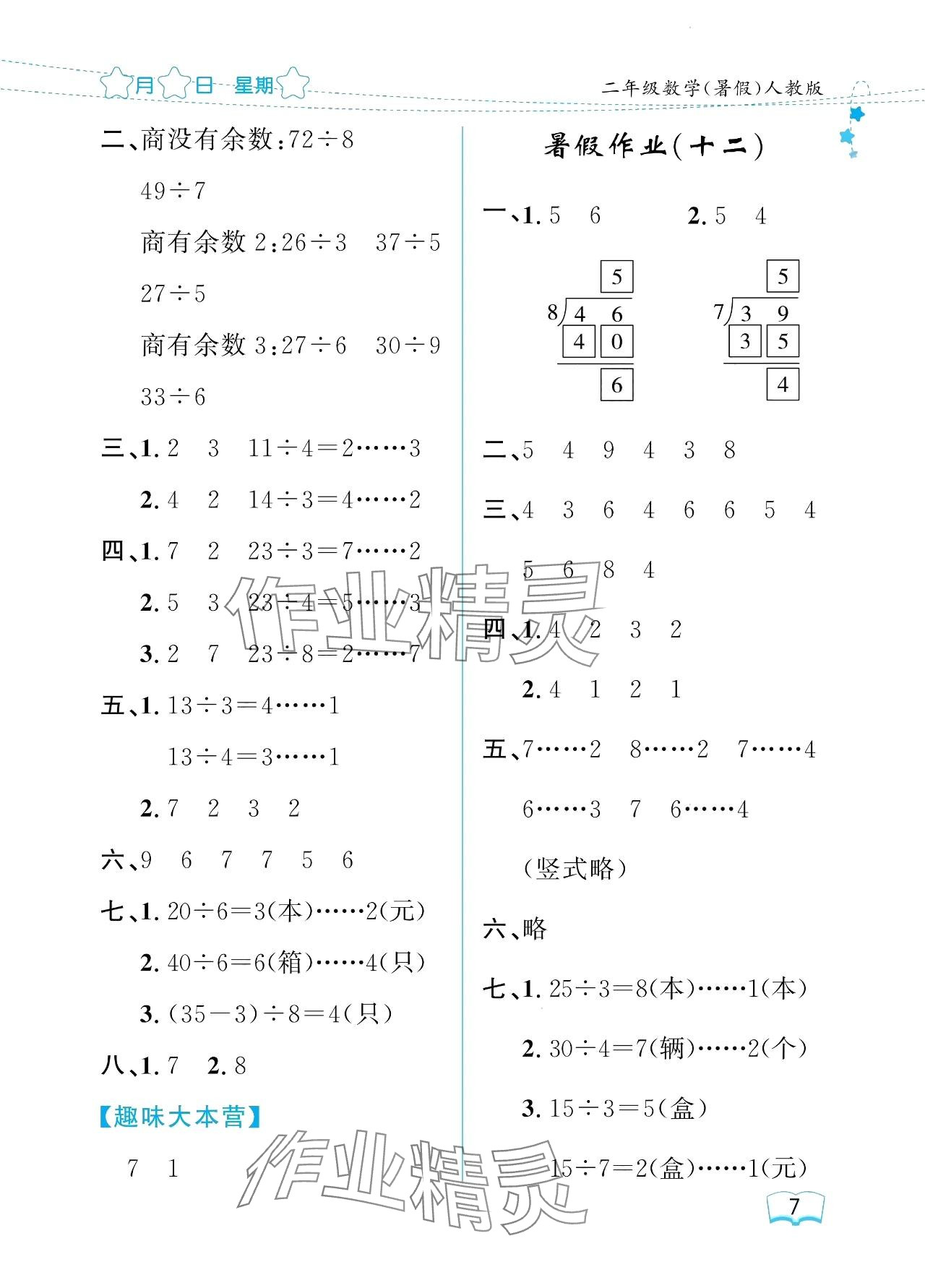 注:目前有些书本章节名称可能整理的还不是很完善,但都是按照顺序排列的,请同学们按照顺序仔细查找。练习册 2024年阳光假日暑假二年级数学人教版 答案主要是用来给同学们做完题方便对答案用的,请勿直接抄袭。