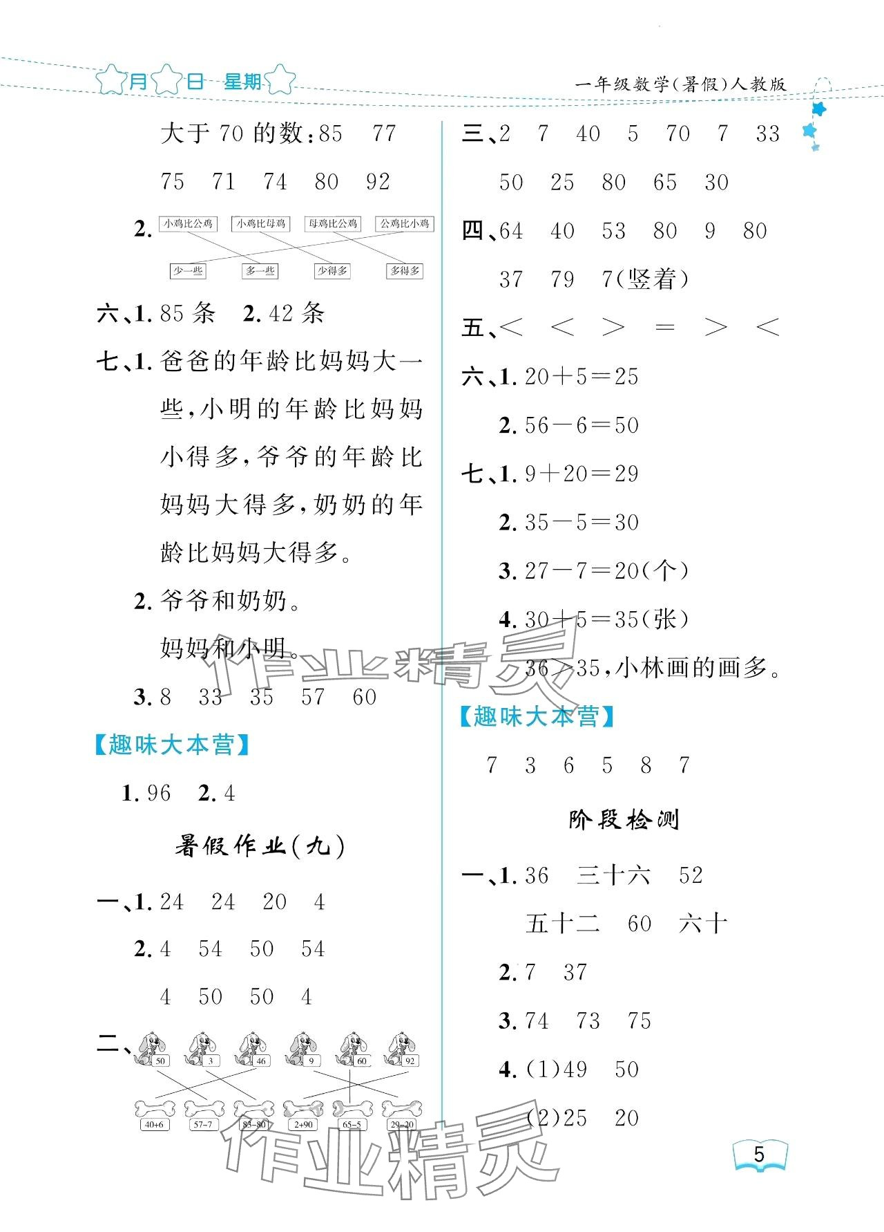 注:目前有些书本章节名称可能整理的还不是很完善,但都是按照顺序排列的,请同学们按照顺序仔细查找。练习册 2024年阳光假日暑假一年级数学人教版 答案主要是用来给同学们做完题方便对答案用的,请勿直接抄袭。