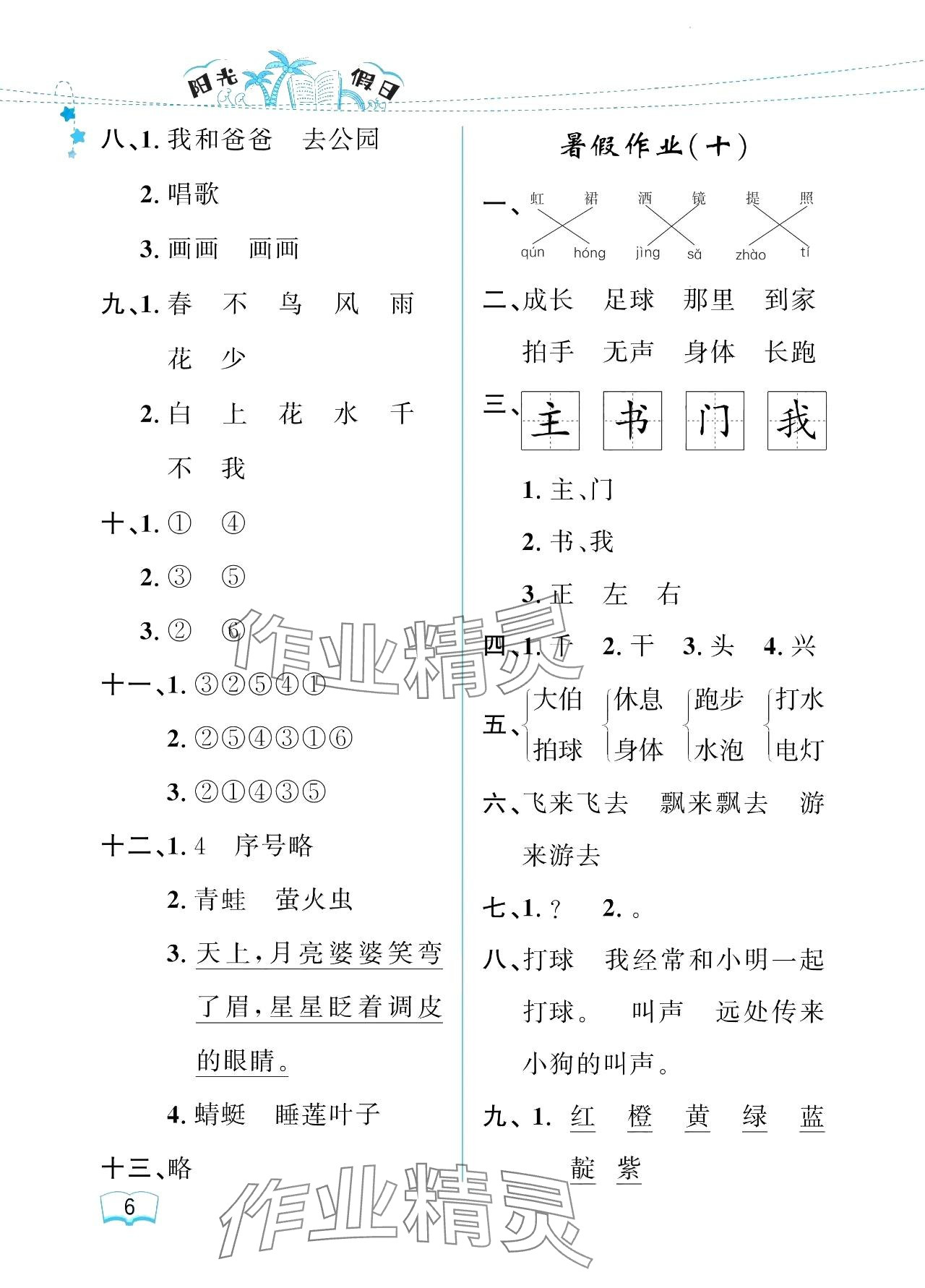 注:目前有些书本章节名称可能整理的还不是很完善,但都是按照顺序排列的,请同学们按照顺序仔细查找。练习册 2024年阳光假日暑假一年级语文人教版 答案主要是用来给同学们做完题方便对答案用的,请勿直接抄袭。