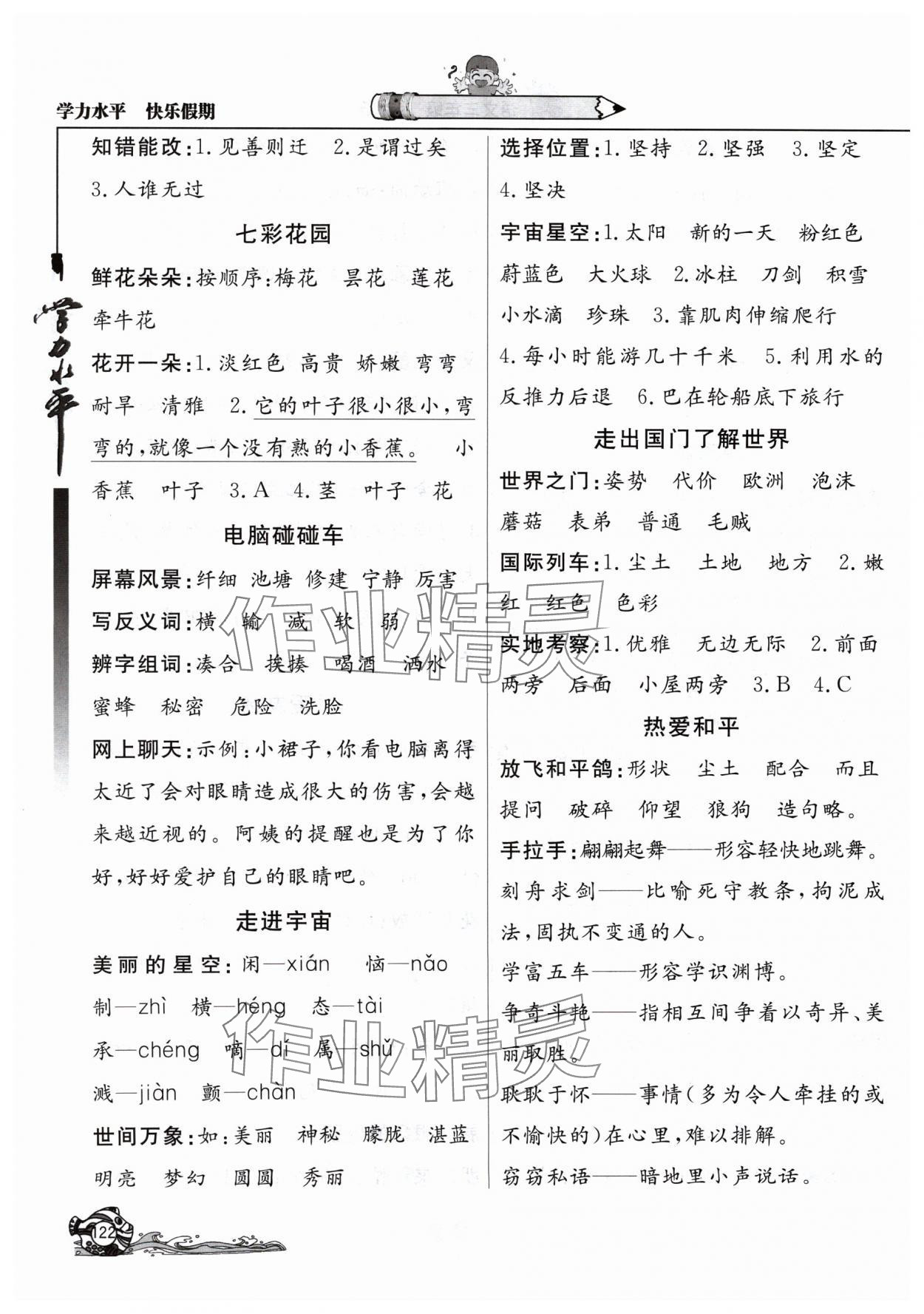 注:目前有些书本章节名称可能整理的还不是很完善,但都是按照顺序排列的,请同学们按照顺序仔细查找。练习册 2024年学力水平快乐假期暑假三年级语文人教版北京教育出版社 答案主要是用来给同学们做完题方便对答案用的,请勿直接抄袭。