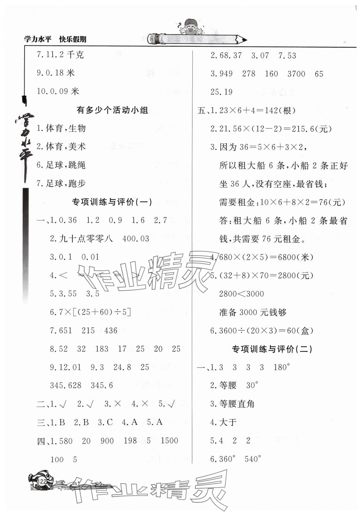 《2024年学力水平快乐假期暑假四年级数学人教版北京教育出版社》
