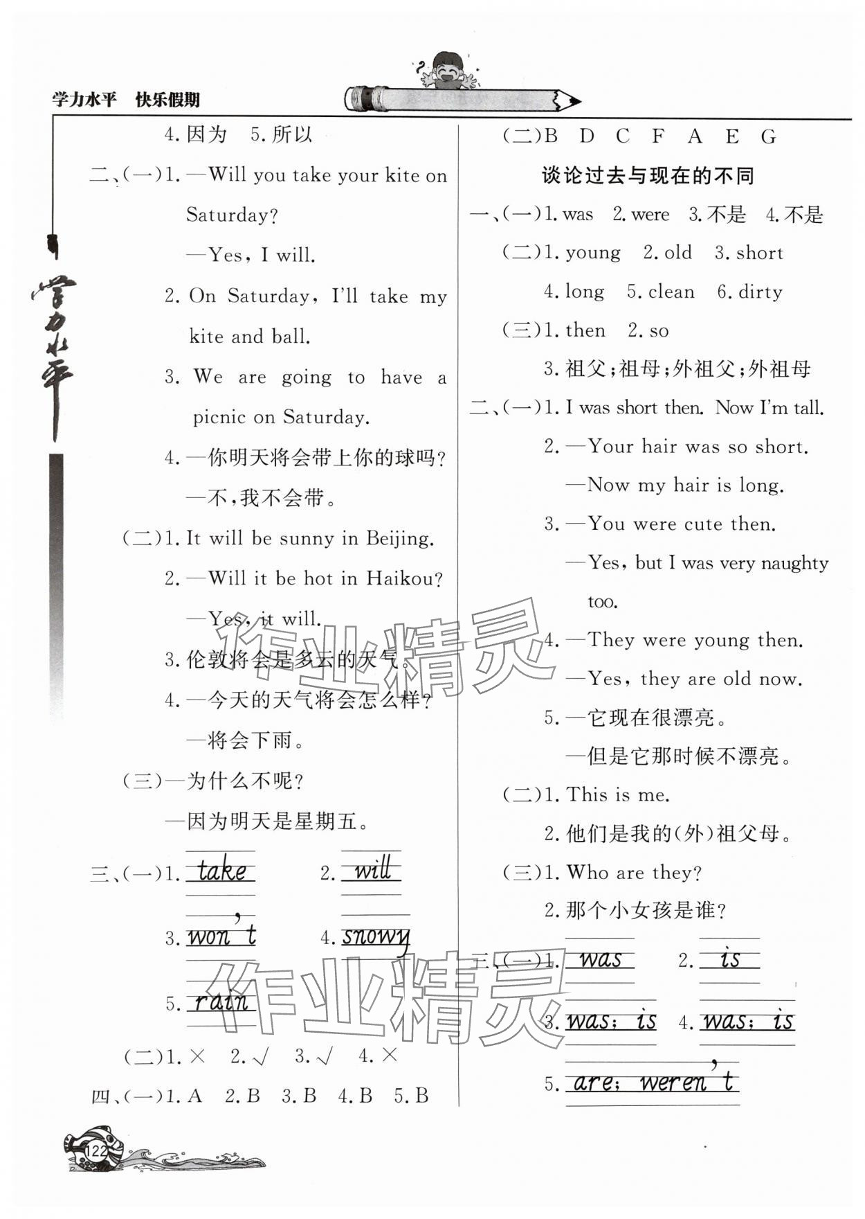 注:目前有些书本章节名称可能整理的还不是很完善,但都是按照顺序排列的,请同学们按照顺序仔细查找。练习册 2024年学力水平快乐假期暑假四年级英语外研版三起北京教育出版社 答案主要是用来给同学们做完题方便对答案用的,请勿直接抄袭。