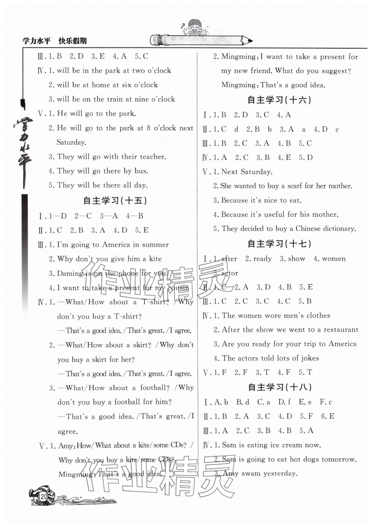 注:目前有些书本章节名称可能整理的还不是很完善,但都是按照顺序排列的,请同学们按照顺序仔细查找。练习册 2024年学力水平快乐假期暑假五年级英语外研版三起北京教育出版社 答案主要是用来给同学们做完题方便对答案用的,请勿直接抄袭。