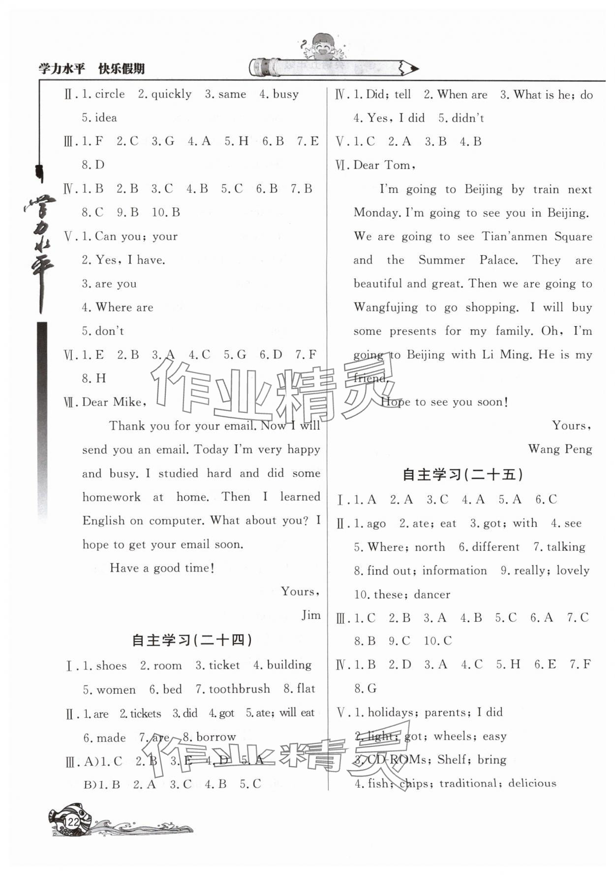 2024年学力水平快乐假期暑假五年级英语外研版三起北京教育出版社