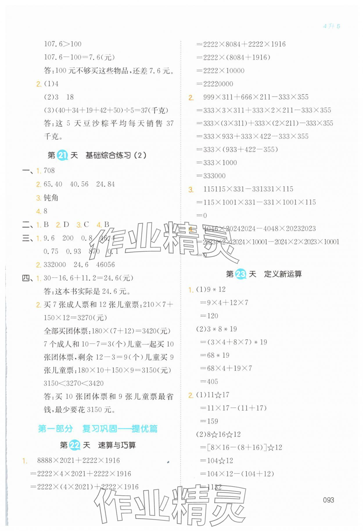 注:目前有些书本章节名称可能整理的还不是很完善,但都是按照顺序排列的,请同学们按照顺序仔细查找。练习册 2024年一本暑假衔接四升五数学人教版浙江专版 答案主要是用来给同学们做完题方便对答案用的,请勿直接抄袭。
