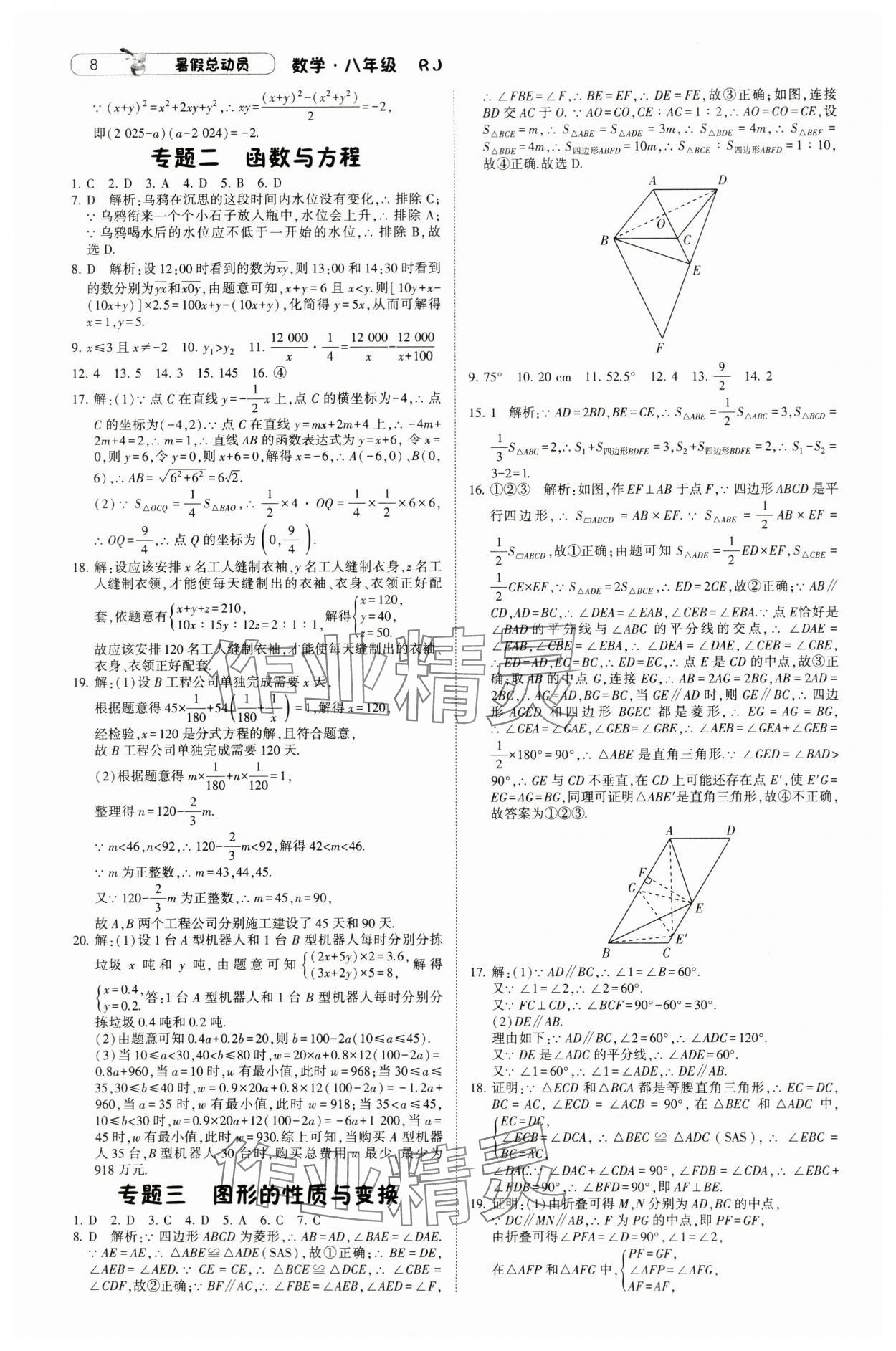 2024年暑假总动员八年级数学人教版宁夏人民出版社