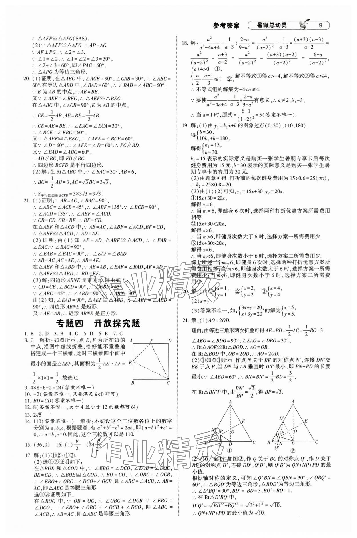 注:目前有些书本章节名称可能整理的还不是很完善,但都是按照顺序排列的,请同学们按照顺序仔细查找。练习册 2024年暑假总动员八年级数学人教版宁夏人民出版社 答案主要是用来给同学们做完题方便对答案用的,请勿直接抄袭。