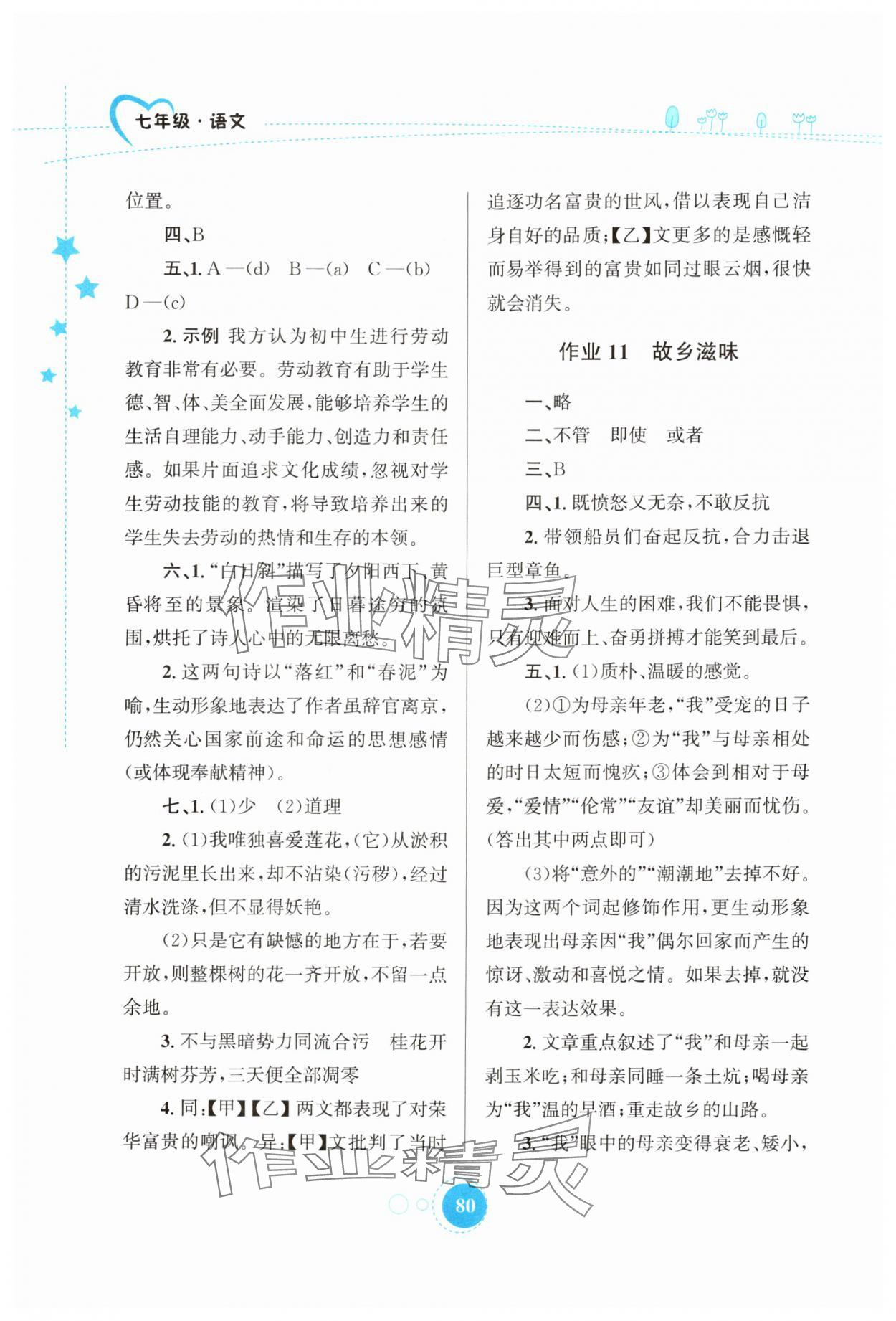 2024年暑假作业陕西旅游出版社七年级语文人教版
