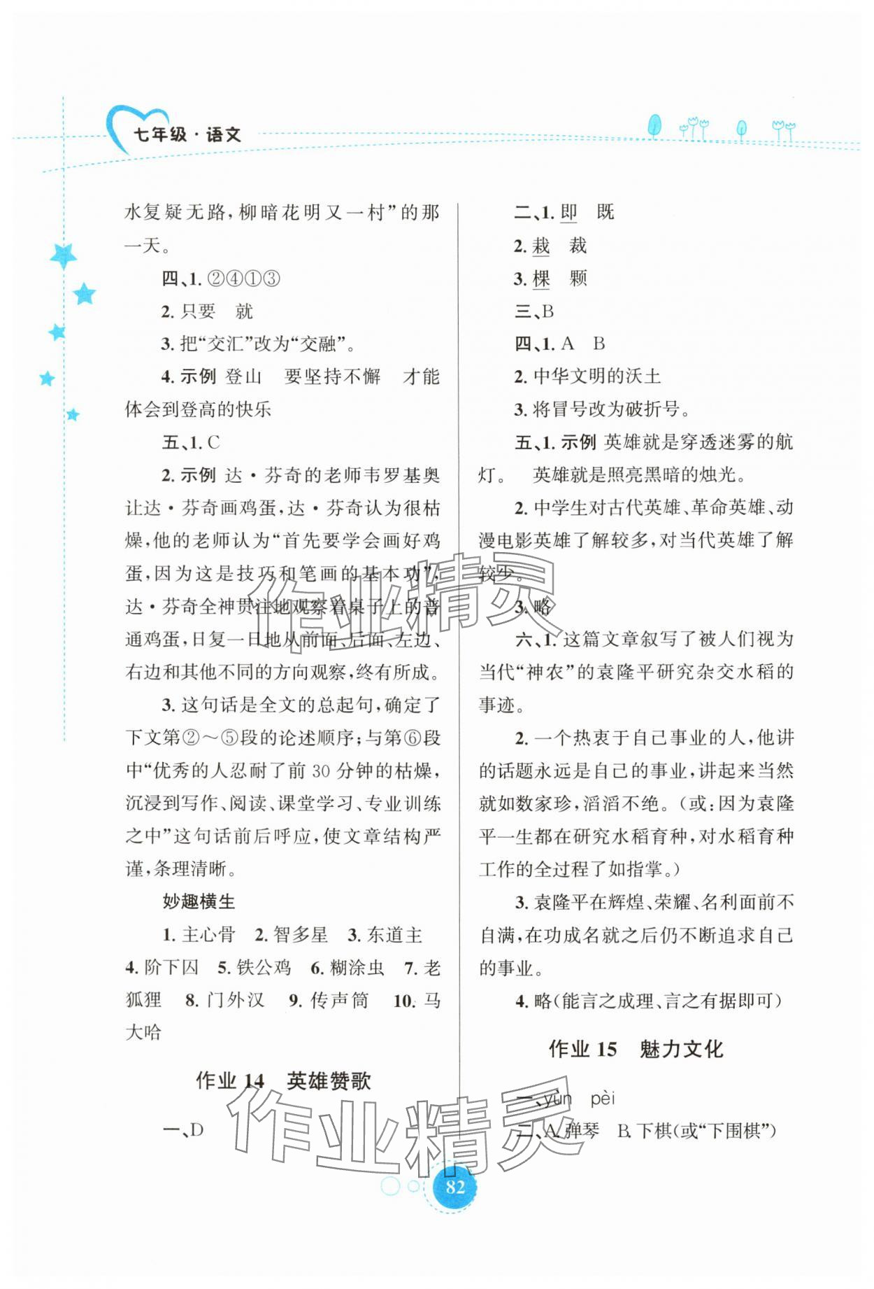 2024年暑假作业陕西旅游出版社七年级语文人教版