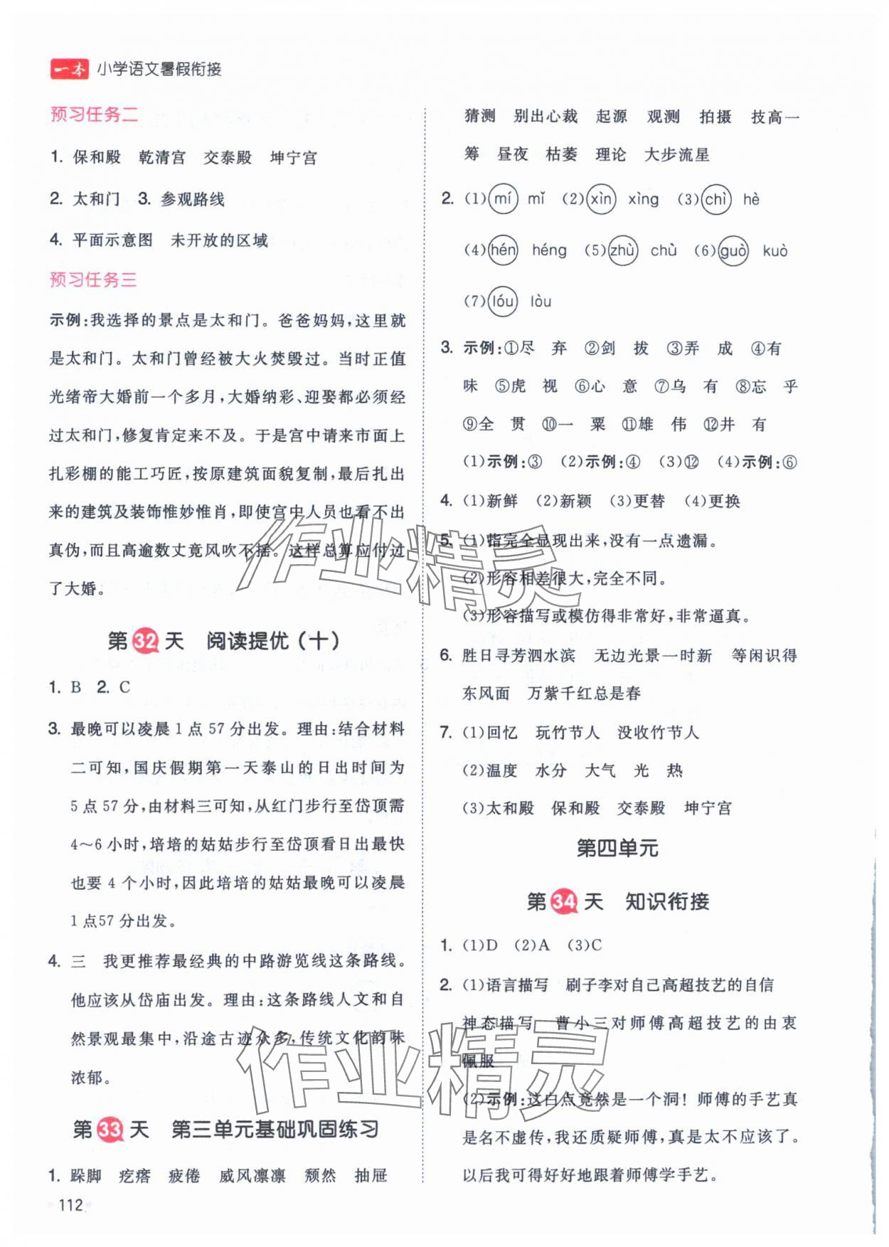 注:目前有些书本章节名称可能整理的还不是很完善,但都是按照顺序排列的,请同学们按照顺序仔细查找。练习册 2024年一本暑假衔接五年级语文 答案主要是用来给同学们做完题方便对答案用的,请勿直接抄袭。
