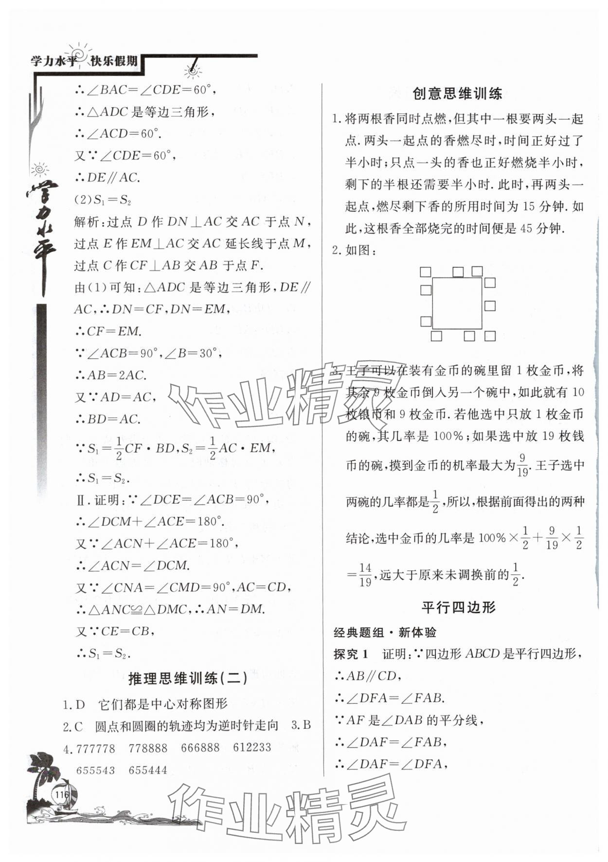 注:目前有些书本章节名称可能整理的还不是很完善,但都是按照顺序排列的,请同学们按照顺序仔细查找。练习册 2024年学力水平快乐假暑假八年级数学北师大版北京教育出版社 答案主要是用来给同学们做完题方便对答案用的,请勿直接抄袭。