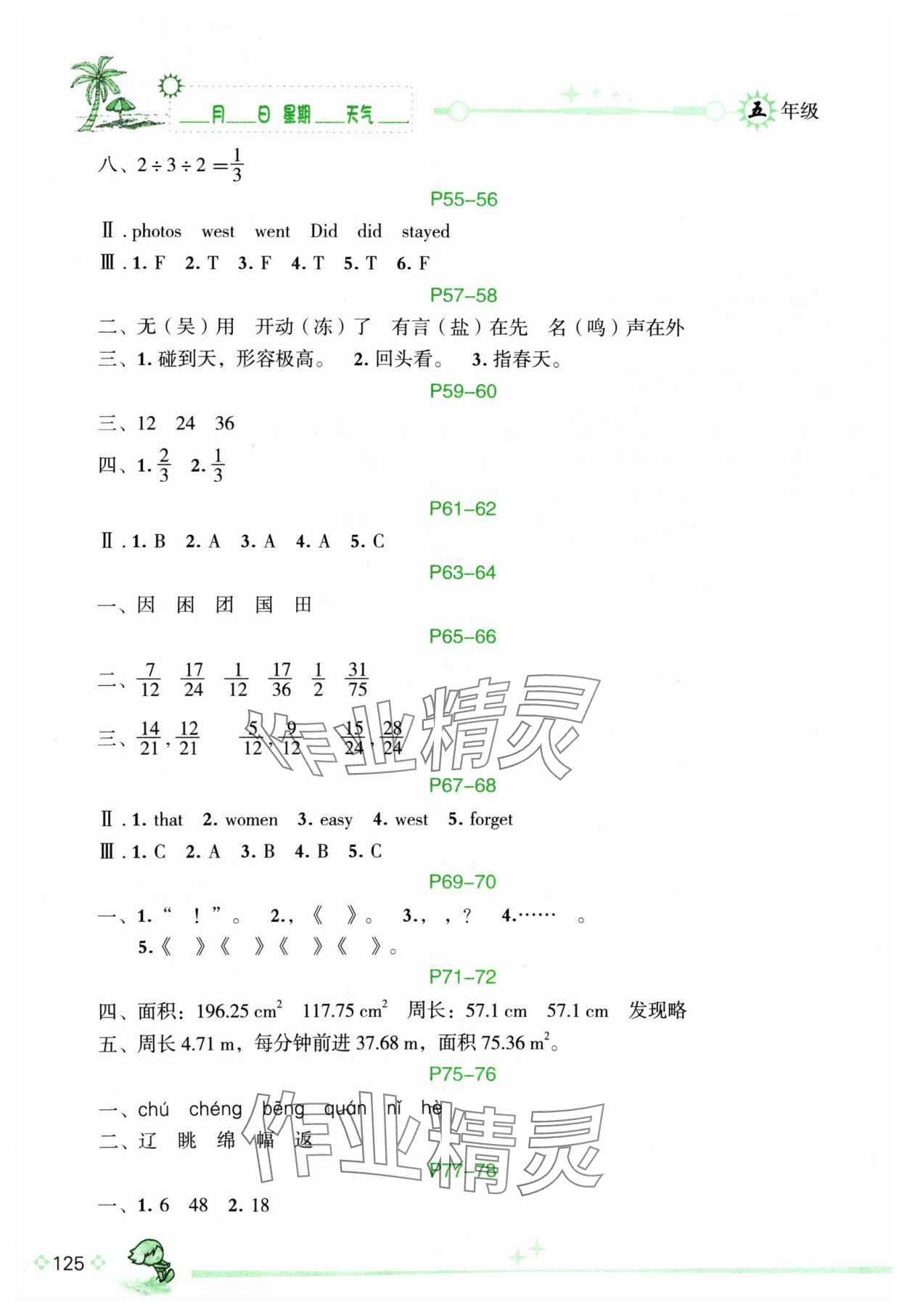 注:目前有些书本章节名称可能整理的还不是很完善,但都是按照顺序排列的,请同学们按照顺序仔细查找。练习册 2024年优秀生快乐假期每一天全新暑假作业本五年级综合海南专版延边人民出版社 答案主要是用来给同学们做完题方便对答案用的,请勿直接抄袭。