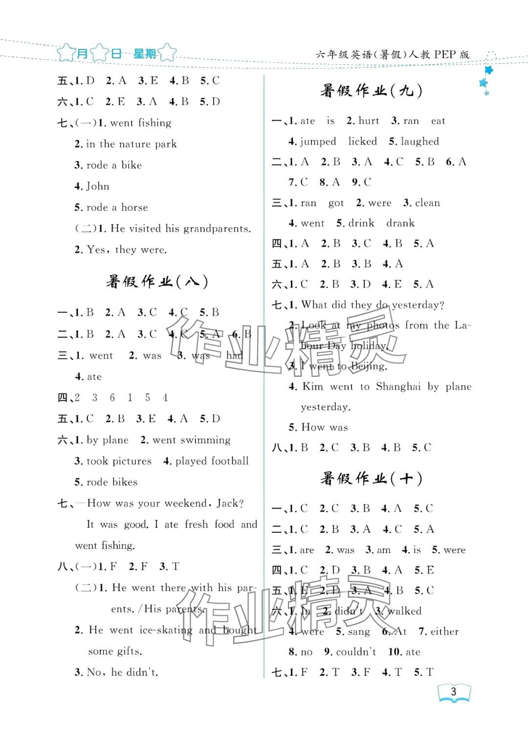 注:目前有些书本章节名称可能整理的还不是很完善,但都是按照顺序排列的,请同学们按照顺序仔细查找。练习册 2024年阳光假日暑假六年级英语人教版 答案主要是用来给同学们做完题方便对答案用的,请勿直接抄袭。
