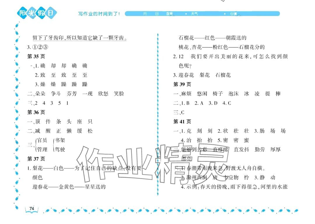 注:目前有些书本章节名称可能整理的还不是很完善,但都是按照顺序排列的,请同学们按照顺序仔细查找。练习册 2024年阳光假日暑假三年级语文人教版大庆专用 答案主要是用来给同学们做完题方便对答案用的,请勿直接抄袭。