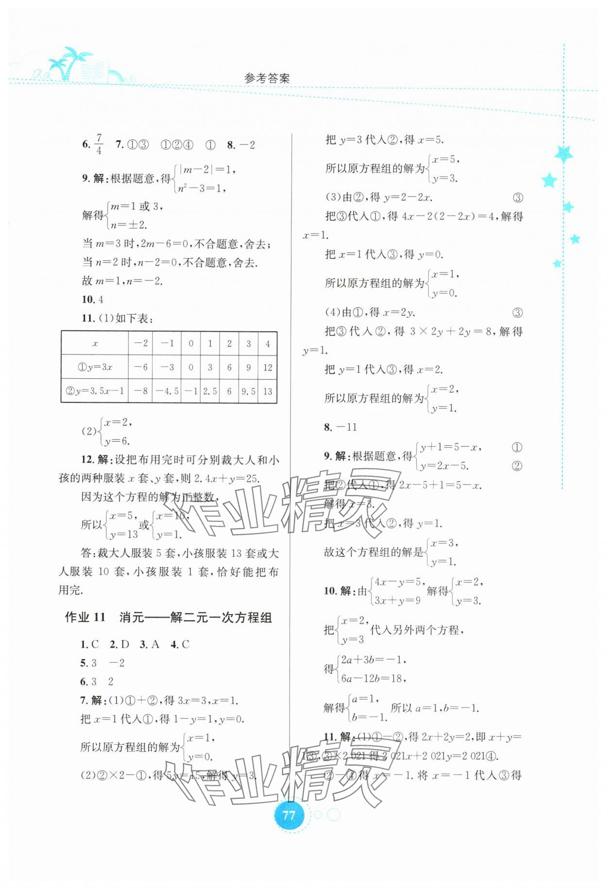 2024年暑假作业知识出版社七年级数学