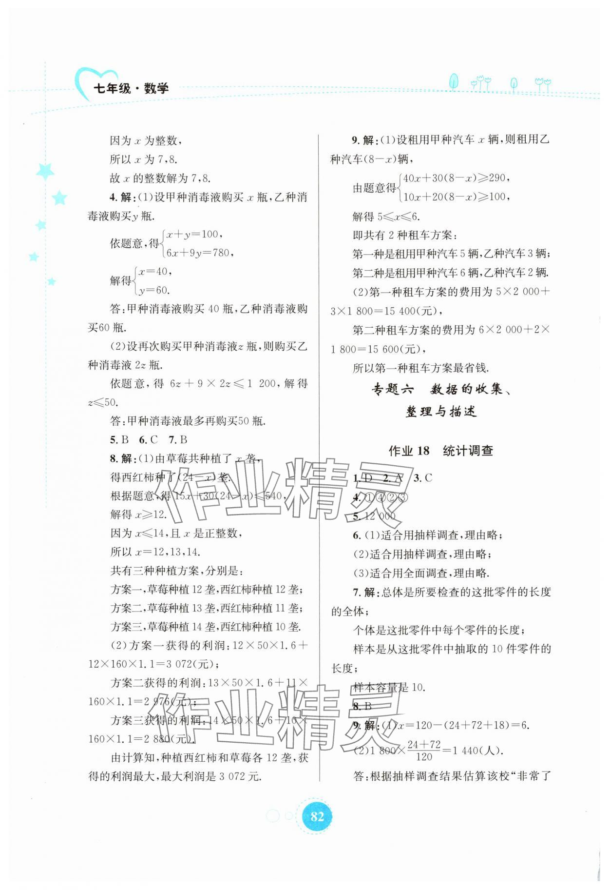 2024年暑假作业知识出版社七年级数学