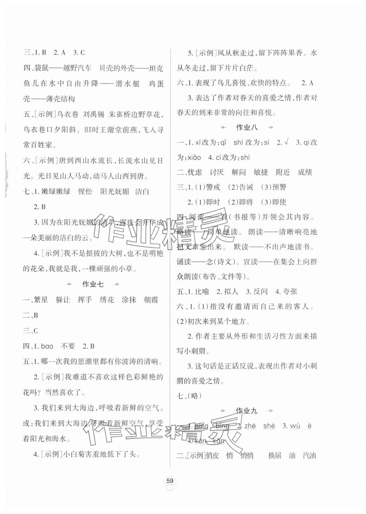 注:目前有些书本章节名称可能整理的还不是很完善,但都是按照顺序排列的,请同学们按照顺序仔细查找。练习册 2024年暑假作业陕西人民教育出版社四年级语文 答案主要是用来给同学们做完题方便对答案用的,请勿直接抄袭。