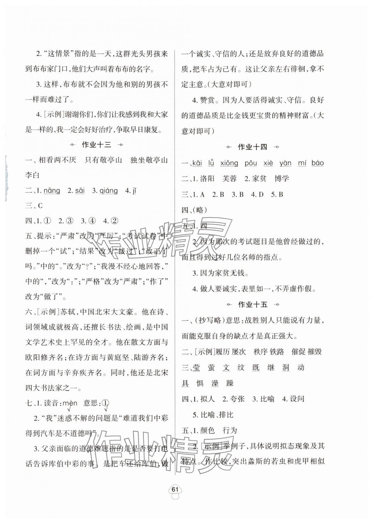 注:目前有些书本章节名称可能整理的还不是很完善,但都是按照顺序排列的,请同学们按照顺序仔细查找。练习册 2024年暑假作业陕西人民教育出版社四年级语文 答案主要是用来给同学们做完题方便对答案用的,请勿直接抄袭。